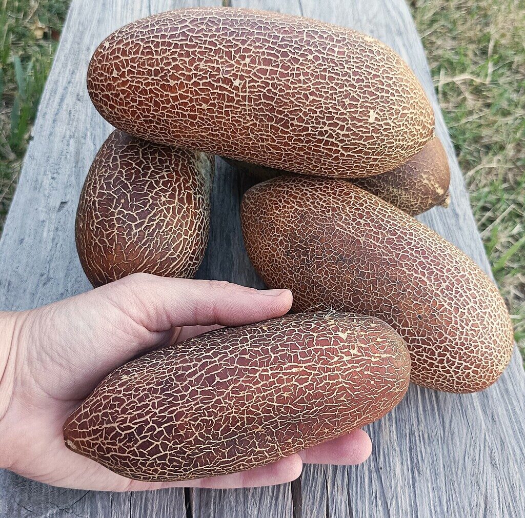 Discovered in the Himalayas of India and Nepal, this unique cucumber variety produces an abundance of short, plump fruits that can reach up to 38 cm in length and display a striking rusty-red color. The vigorous vines grow much like regular cucumbers, making them ideal for fences and trellis gardening.