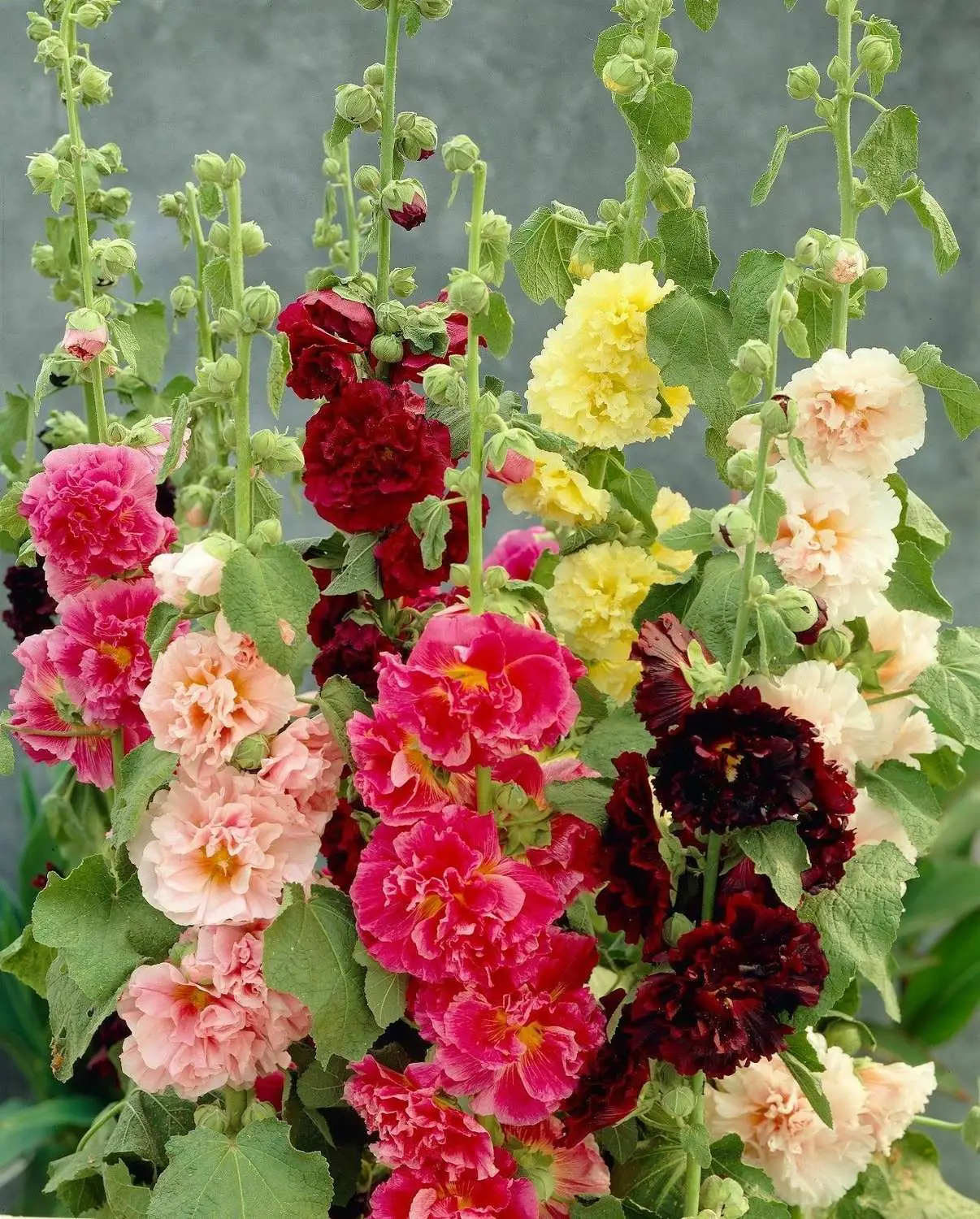 Alcea rosea variety double chaters have been grown in gardens for centuries, their high spikes of silk-textured satin flowers promote a beautiful display and a unique spectacle.