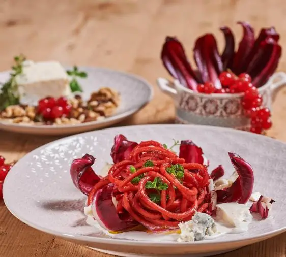 Cichorium intybus ‘Rossa di Treviso’ is a striking Italian heirloom variety of radicchio prized for its deep red, elongated leaves with crisp white ribs. It forms tight, upright heads that resemble small romaine lettuces. The leaves have a pleasantly bitter flavor that mellows when grilled, roasted, or sautéed, making it a favorite in Mediterranean cuisine.