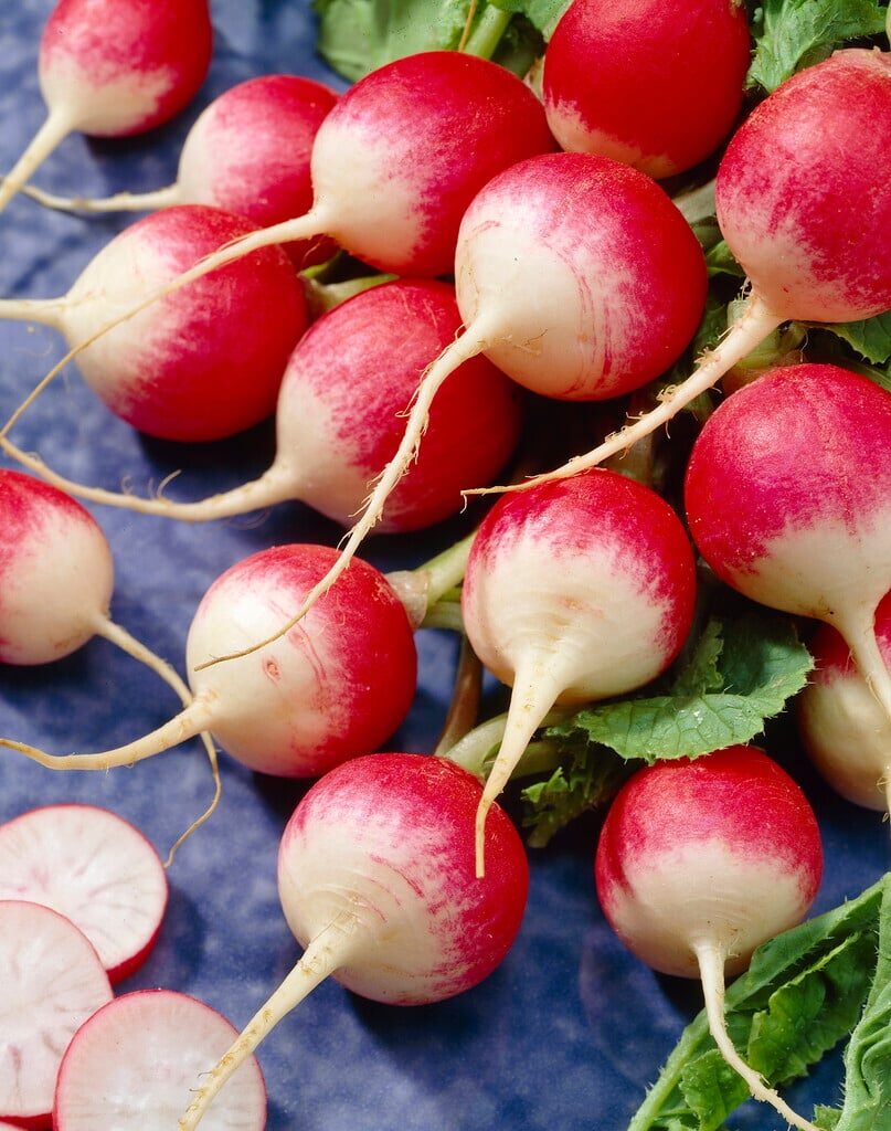 Raphanus sativus ‘Red Radish’ is a popular, fast-growing root vegetable in the mustard family (Brassicaceae). This cool-season annual is widely known for its crisp, pungent, and peppery flavor, which comes from compounds like glucosinolates. The plant forms a rosette of lobed leaves above ground, while its edible part, a swollen taproot, develops below. The ‘Red Radish’ variety is distinguished by its vibrant red skin and typically round shape, though it can also be oblong. It is a favorite among gardeners for its quick maturation, often ready to harvest in as little as three to six weeks after planting, making it an excellent crop for beginners.