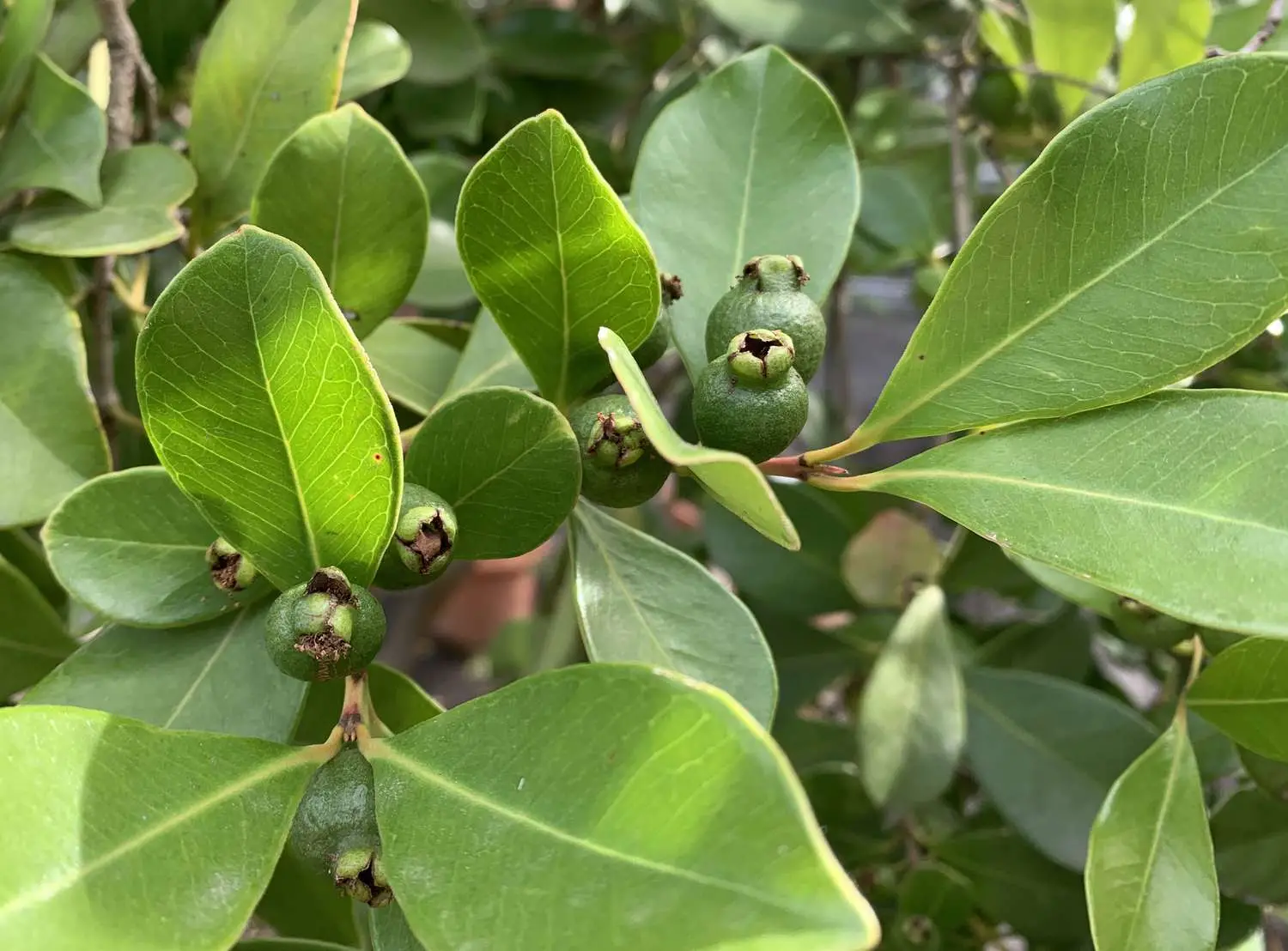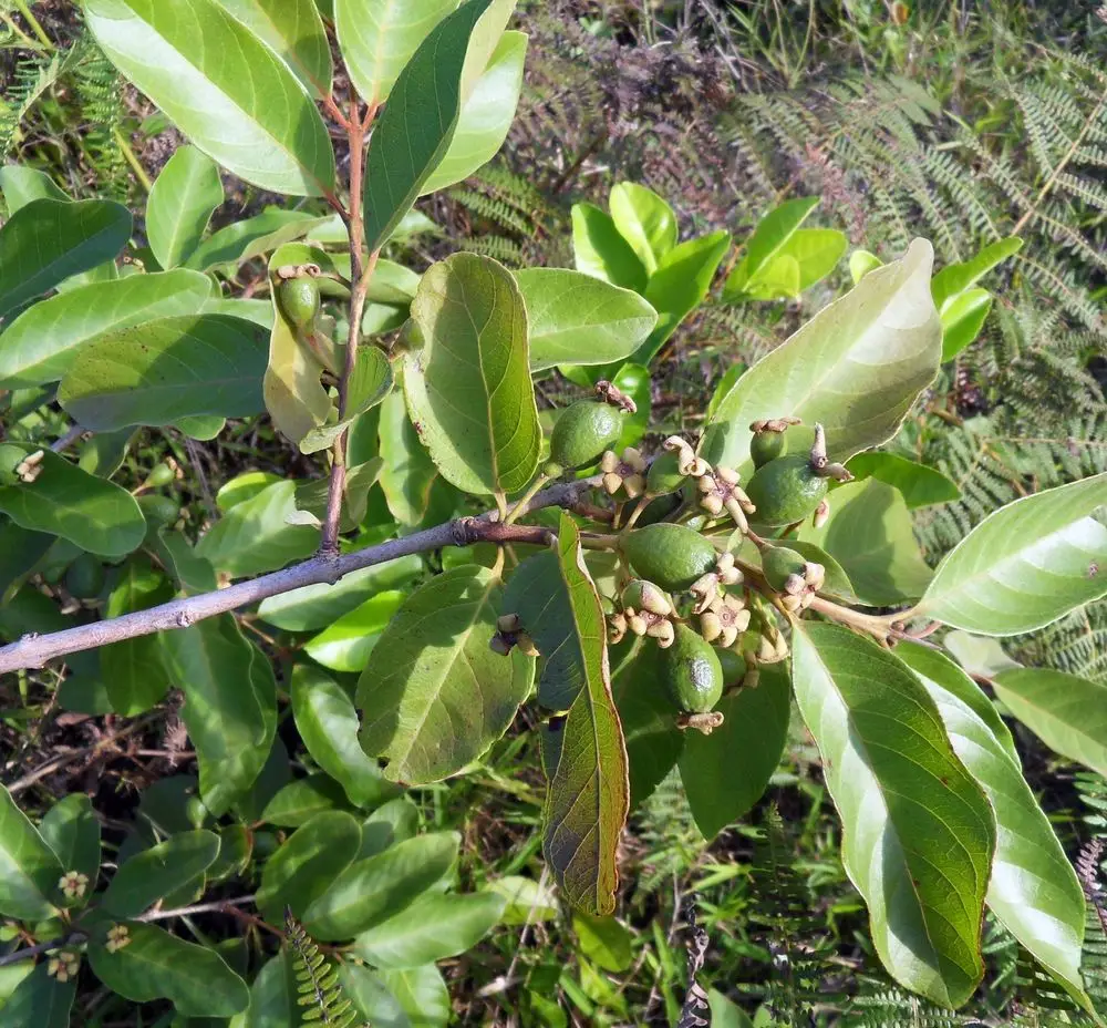 Psidium guineense, a tropical shrub or small tree belonging to the myrtle family (Myrtaceae), produces seeds that are a key feature of its fruit. The plant is commonly known by names such as Brazilian guava, Guinea guava, or sour guava.