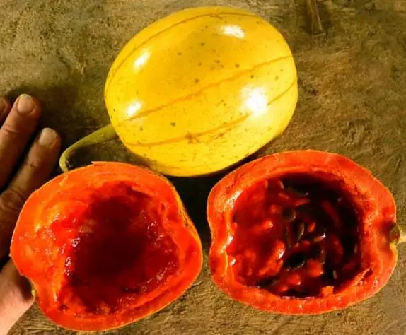 The fruit harvest is carried out when the green-lemon coloring transforms in bright yellow with fine lines between the segments. Greater surprise is when the ripe fruit is cut and open.
