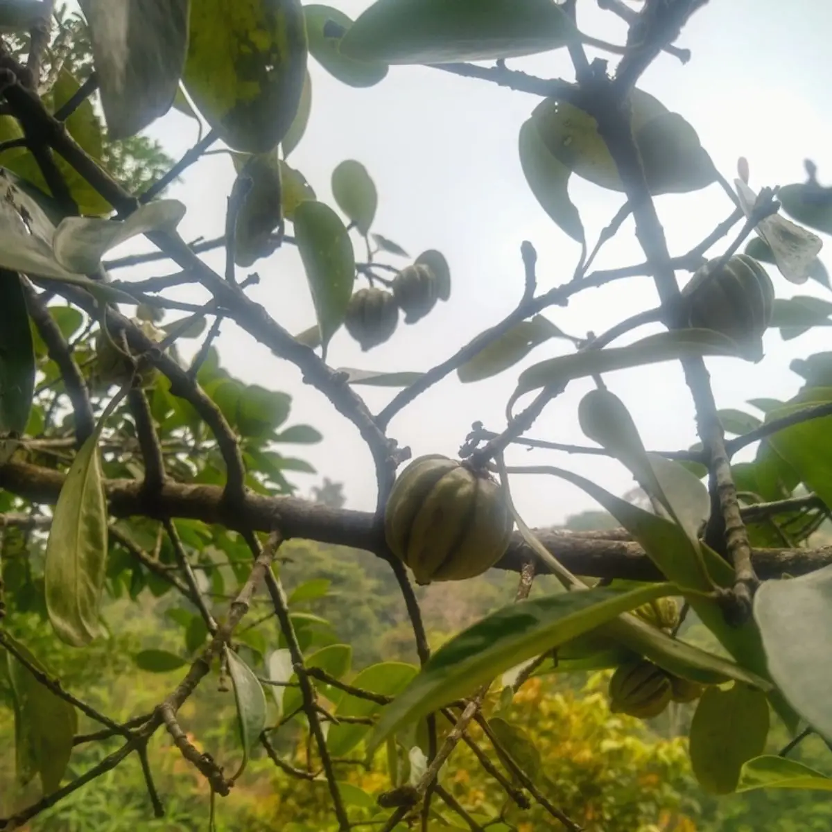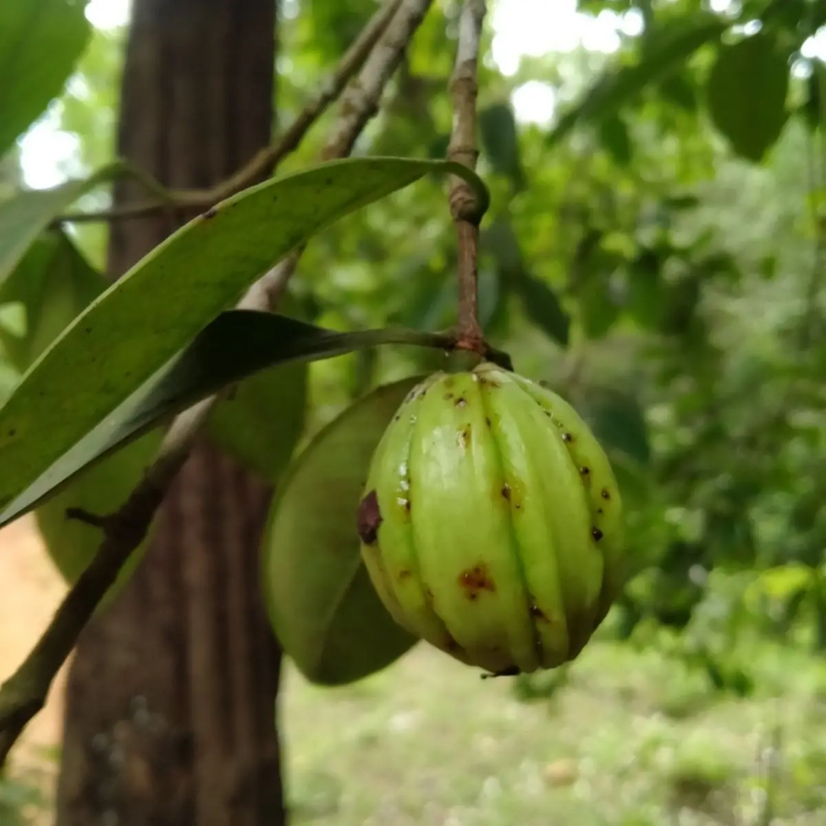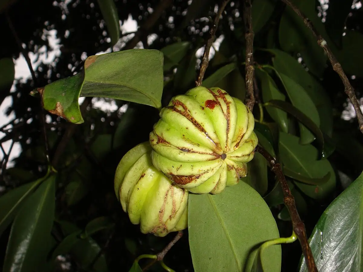 Garcinia gummi-gutta is a tropical species of Garcinia native to South Asia and Southeast Asia. Common names include Garcinia cambogia (a former scientific name), as well as brindle berry, and Malabar tamarind. The fruit looks like a small pumpkin and is green to pale yellow in color.