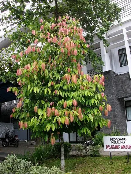 Beautiful pyramid-shaped tree that can reach more than 20 meters in height in its original habitat, with juvenile leaves that are colored in pink, turning to red and wine.