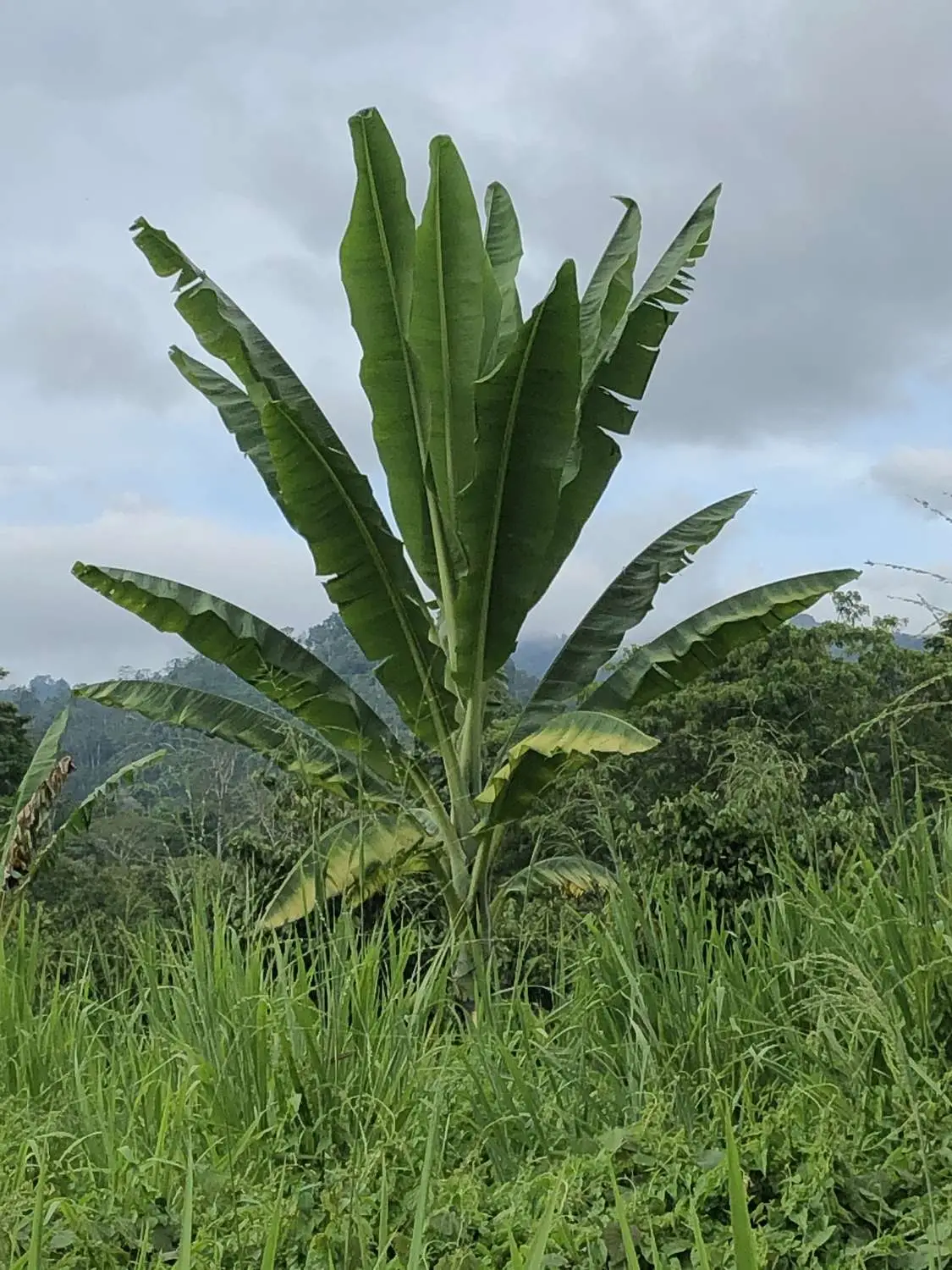 Ensete glaucum is a striking ornamental banana species native to Southeast Asia and the Himalayas. It features large, paddle-shaped, bluish-green leaves and a thick, waxy pseudostem with a glaucous (bluish-white) sheen that gives the plant its distinctive look.