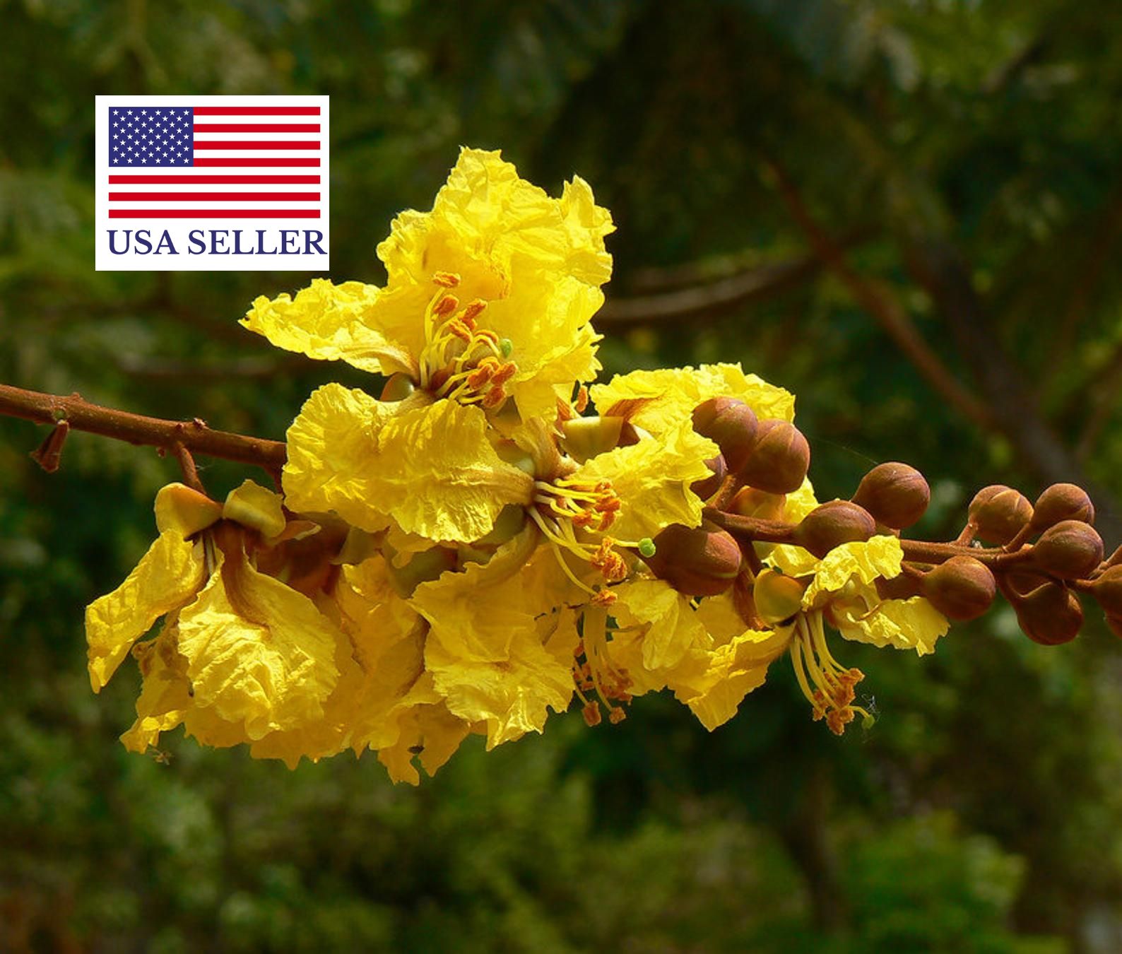 A magnificent, medium-sized, dry deciduous tree rarely more than 20 m tall, native to coastal forests and savannas in southern Asia and Australasia, with bipinnate foliage and showy racemes of golden yellow flowers. It is a popular ornamental in tropical countries, suitable for USDA Zones 10 and above, and makes a great shade tree. The finely grained wood is popular for furniture and other purposes. Seeds should be scarified or immersed in boiling water to break dormancy, then soaked at room temperature for a day.
