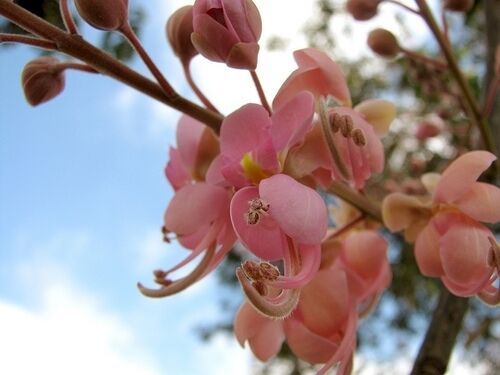 A medium-sized to large, dry deciduous tree to 30 m tall, native to Mexico, the Caribbean and northern South America. It has feathery foliage and a profusion of pink flowers appears when the tree is leafless during the dry season, followed by long, narrow seed pods. The wood is used for construction and the tree has numerous applications in traditional medicine. It makes a breathtaking ornamental for tropical climates.