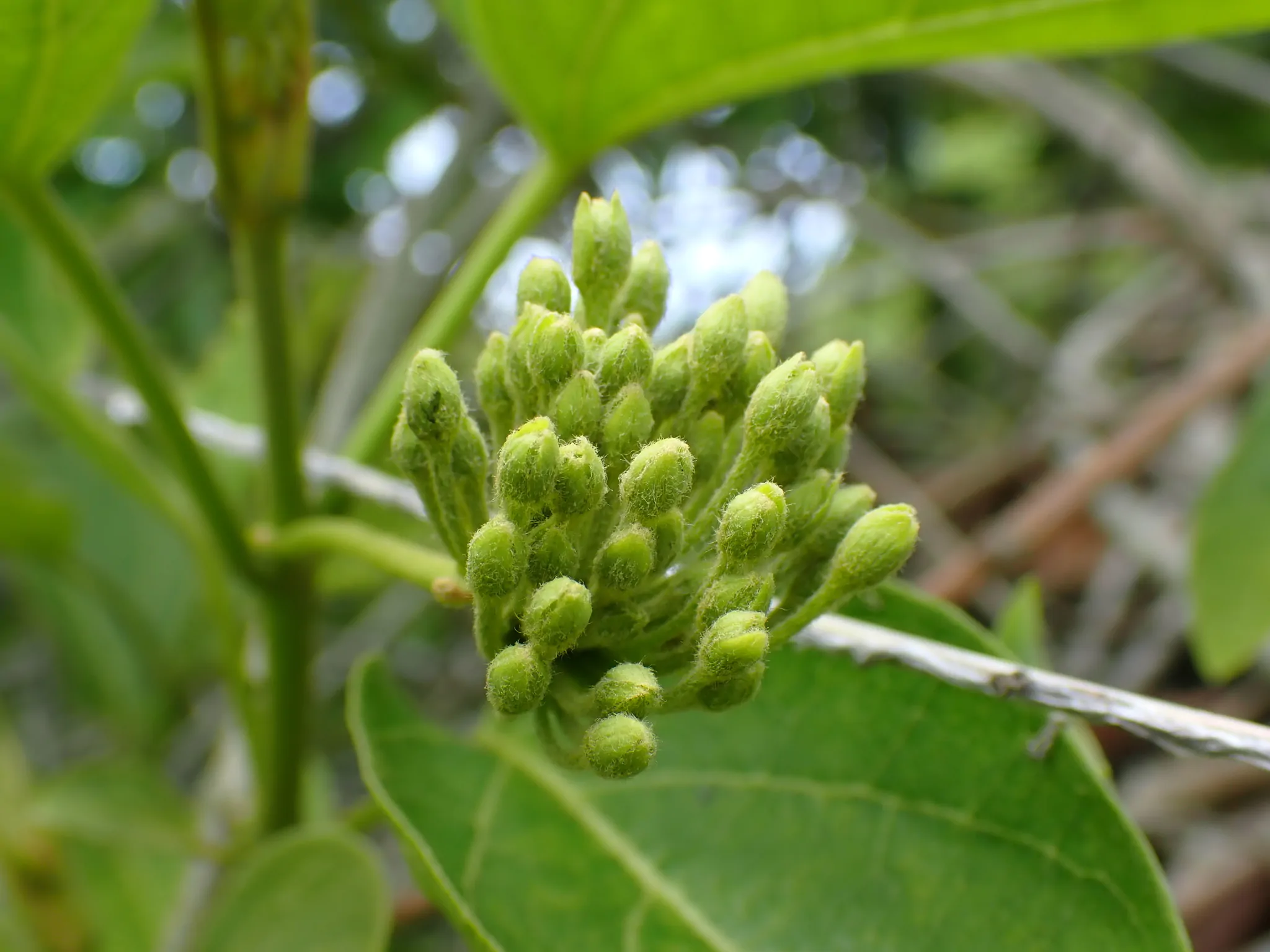 A paste made from the leaves is combined with pepper and used to treat dyspepsia. The leaf paste is also used to treat rheumatic pain, cough, fever and severe cold.The young leaves are used in the treatment of pyodermas and fevers in children.