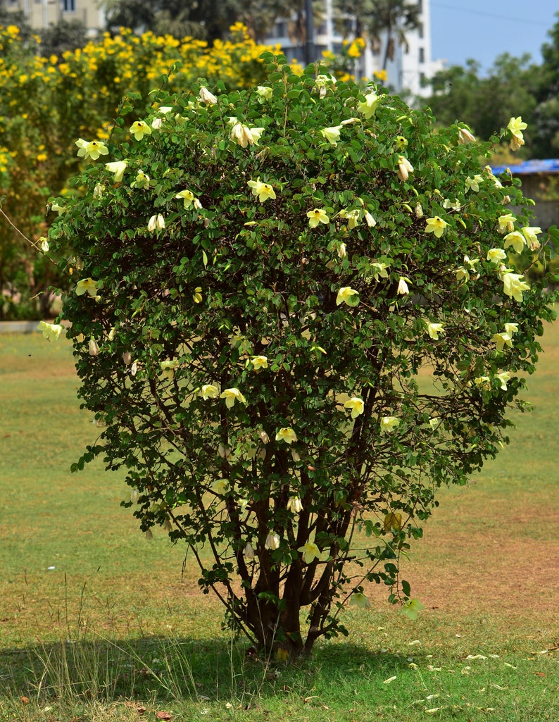 A scrambling shrub or small tree, rarely more than 4 m (13 ft.) tall, with slender, drooping branches and pale yellow bell-shaped flowers with a black throat. It is widely distributed from southern Africa to India and Sri Lanka. It has a number of medicinal uses and makes a beautiful, fast growing ornamental suitable for warm temperate and tropical climates in USDA Zones 10 and above.