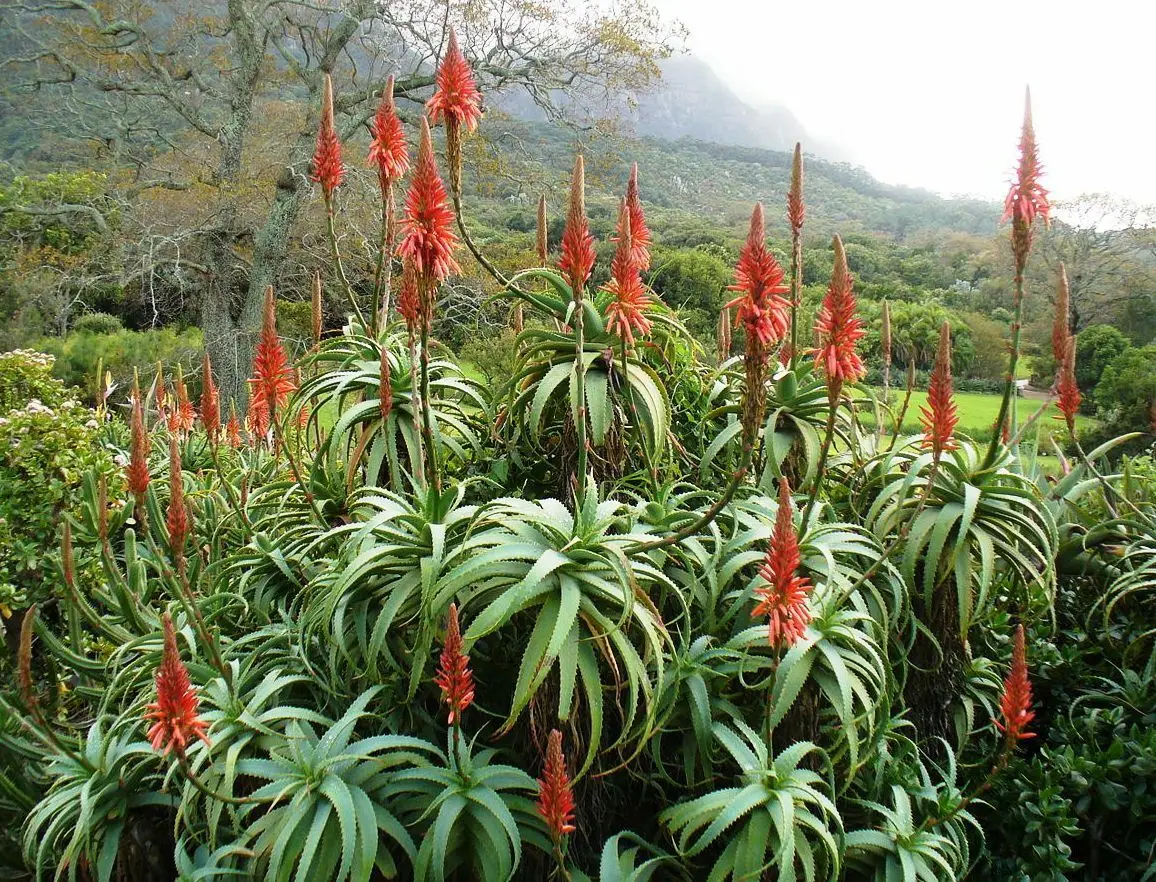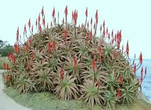A large, trunking, bushy, branched Aloe to about 3 m tall with wide, green or bluish leaves and orange red or very rarely yellow flowers. It is native to a variety of habitats from the Cape in South Africa northeast to Mozambique, Zimbabwe and Malawi from low to high elevations. Aside from being an easy to grow ornamental for tropical and warm temperate climates in USDA Zones 9 to 11, it has medicinal properties similar to Aloe vera and is used in the treatment of cancer.