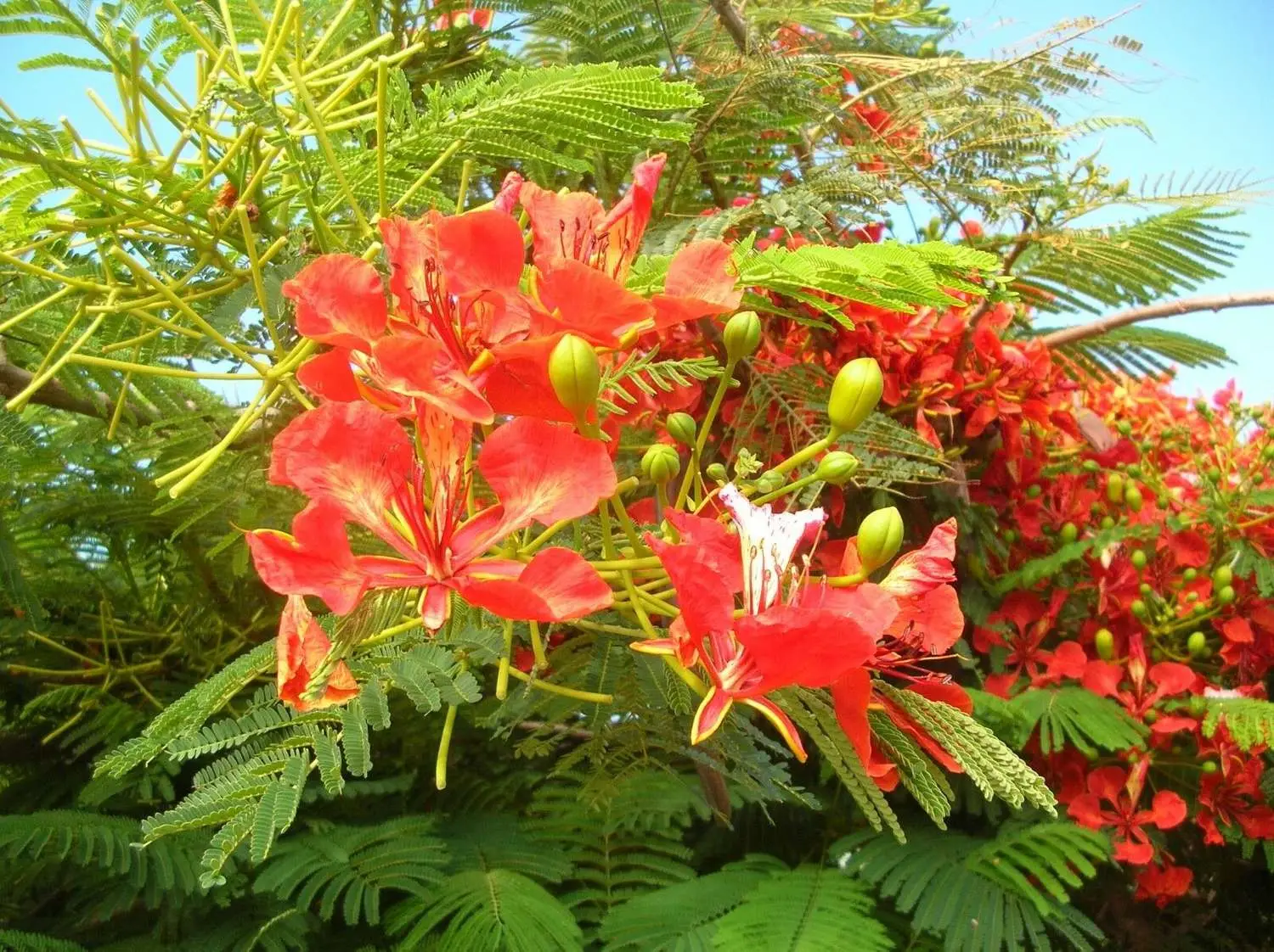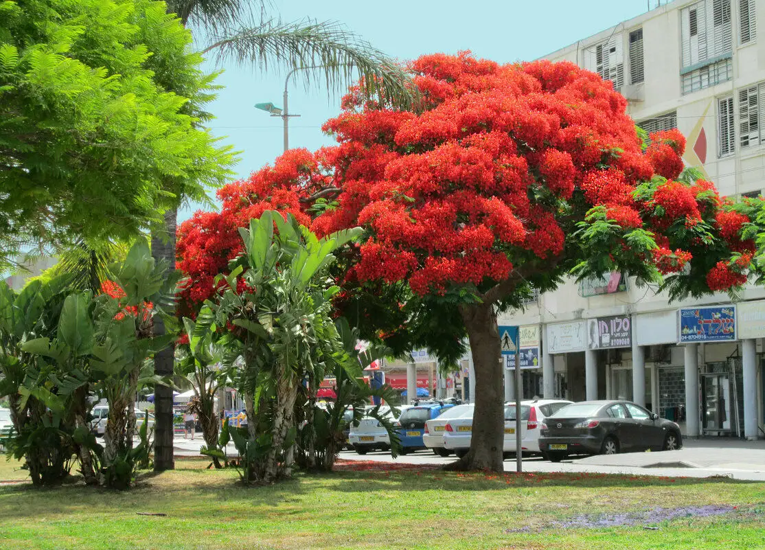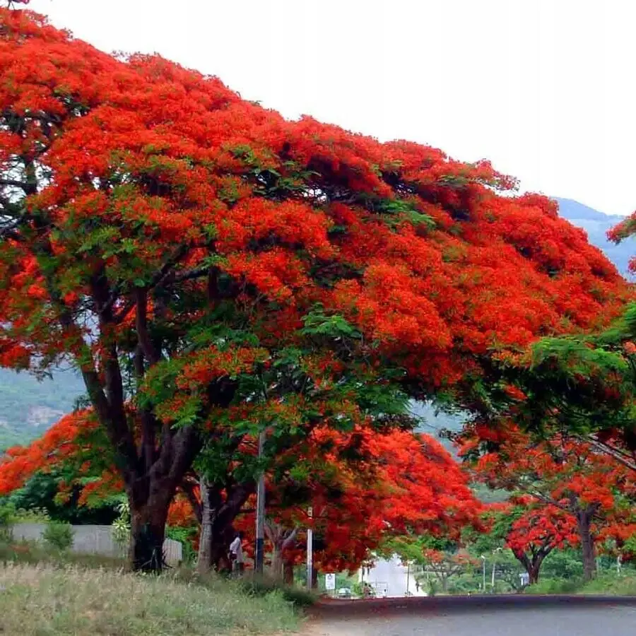Considered by some to be the worlds most beautiful tree, this large, partially dry deciduous tree from lowland forests in northern and western Madagascar forms a huge, spreading crown with finely pinnate foliage and beautiful red flowers that cover the entire plant for several weeks before the new leaves appear. A popular and easily grown ornamental, widely planted around the world in tropical climates in USDA Zones 10 and above. Seeds should be scarified or immersed in boiling water to break dormancy, then soaked at room temperature for a day.