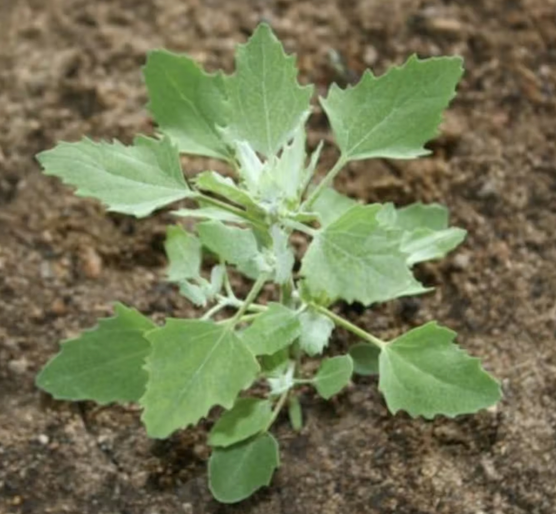 Chenopodium album is a fast-growing annual plant in the genus Chenopodium. Though cultivated in some regions. Common names include lamb’s quarters, melde, goosefoot, wild spinach and fat-hen, though the latter two are also applied to other species of the genus Chenopodium, for which reason it is often distinguished as white goosefoot. Chenopodium album is extensively cultivated and consumed in Northern India as a food crop known as bathua.
