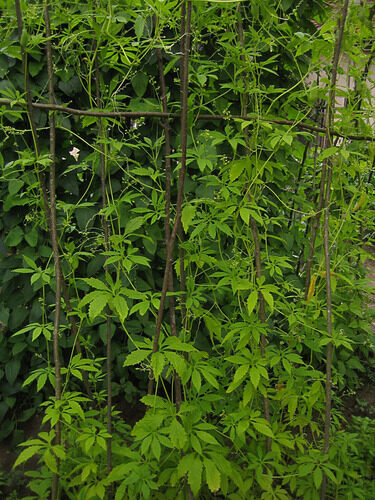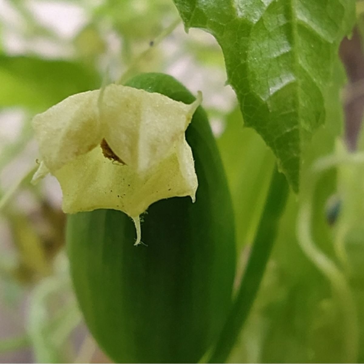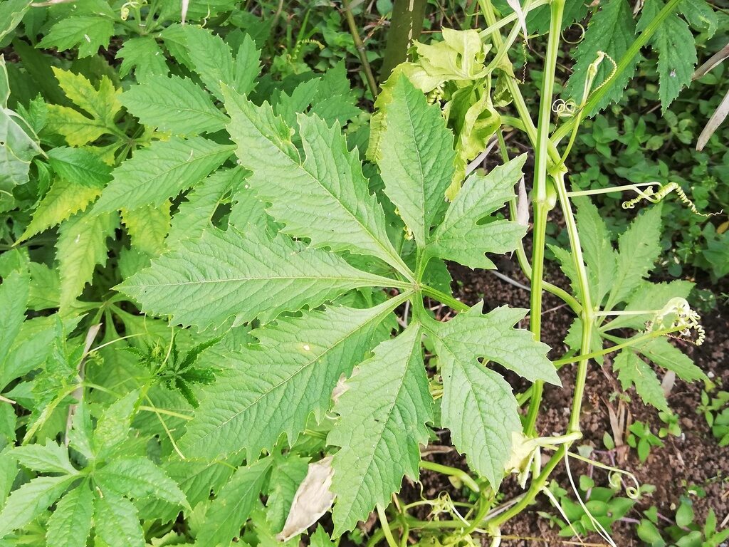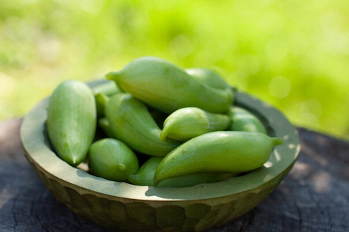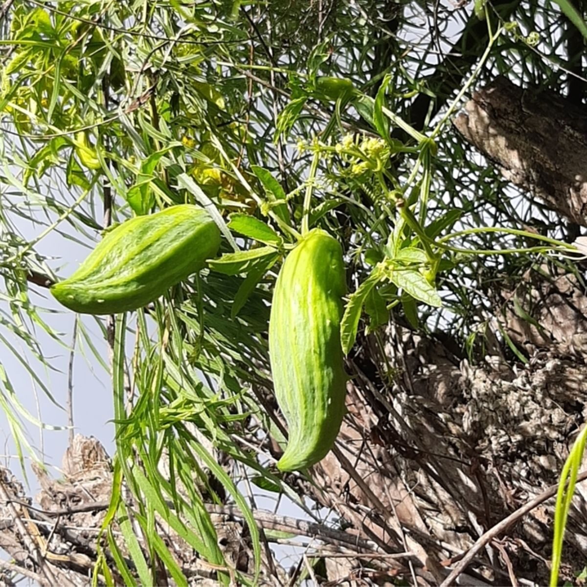 Cyclanthera pedata, known as caigua, is a herbaceous vine grown for its edible fruit, which is predominantly used as a vegetable. It is known from cultivation only, and its use goes back many centuries as evidenced by ancient phytomorphic ceramics from Peru depicting the fruits. Delicious! When cooked, baked or fried they taste like artichokes, asparagus and green peas combined.