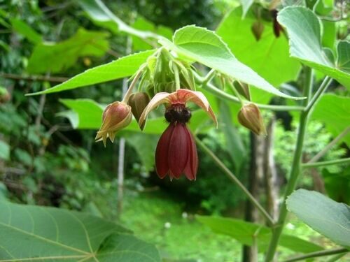 A large shrub or small tree to 10 m tall with soft branches, large leaves and dark reddish purple flowers followed by very strange, 5-winged, goblet-shaped seed pods. The leaves are covered in irritating hairs. Abroma augusta is widespread in tropical Asia and into the western Pacific, where it is usually found along streams and disturbed sites in rainforests from low elevations to 1100 m. The stems yield a high quality fiber that is traditionally used to make ropes, fishing nets, hammocks and other items. It is also an important medicinal plant and aphrodisiac and would be an interesting, fast growing ornamental for the tropics.