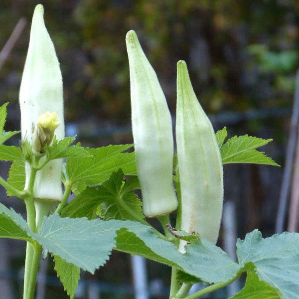 These seeds were collected from Abelmoschus esculentus which had White Fruit, also known as White Velvet Okra, and white Ladies Fingers. This annual vegetable should be grown in full sun. It can get about 8 feet tall and has yellow and white blossoms from late spring until early fall. The fruit is harvested young when it is the most tender and delicious. All parts of this plant are edible but the roots are not very good, and they are tough and stringy. The seeds on the other hand are delicious and can be cooked into dishes or roasted and used as a coffee substitute. Of all the coffee substitutes, this may be the best choice. The seeds can also be ground into a flour and used to make bread, tofu, and tempeh. The stems of this plant are also used to make cord, rope, and paper. This annual can be grown in and USDA Hardiness Zone.
