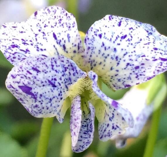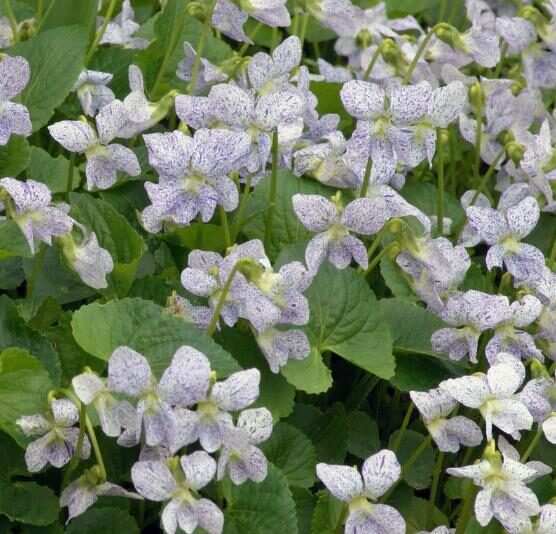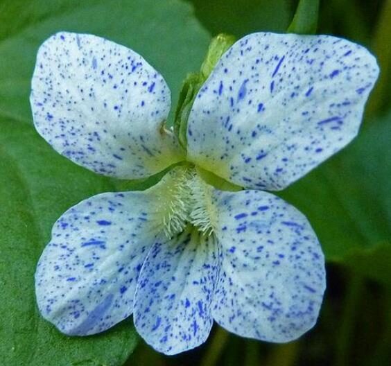 Viola sororia freckles is a rare and unusual violet, perennial, with heavily speckled flowers in blue porcelain or purplish blue shade.