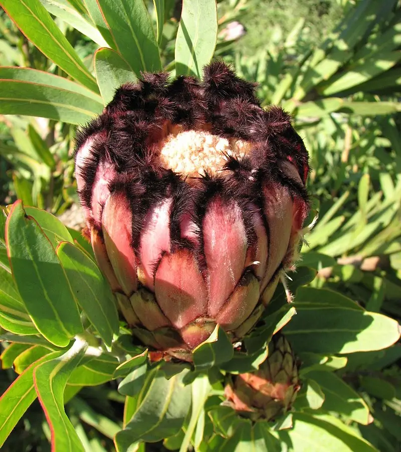 Protea acuminata, also known by the common name black-rim sugarbush, is a flowering shrub belonging to the genus Protea and the family Proteaceae. This species is endemic to South Africa, meaning it is found nowhere else in the world. It grows as an upright shrub or small tree, reaching up to two meters in height.