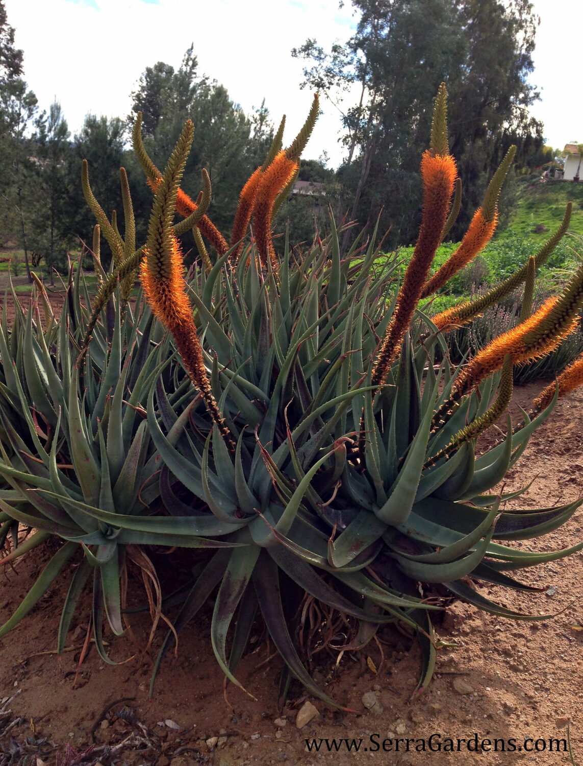 A wonderful Aloe that forms a shrub or small tree to nearly 4 m tall with short, thick branches that hold rosettes of narrow, green or pale blue leaves. The inflorescences are sparsely branched and look like cat’s tails. Easily grown from seed in warm temperate and tropical climates in USDA Zones 9 to 11.