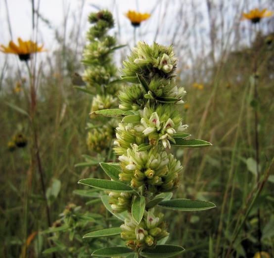 In nature, lespedeza grows in forested areas, in dry meadows, sandy prairies, gravel prairies, hills meadows, limestone clearings, sandy savannas, and in disturbed habitats such as roadsides. It is very drought tolerant.