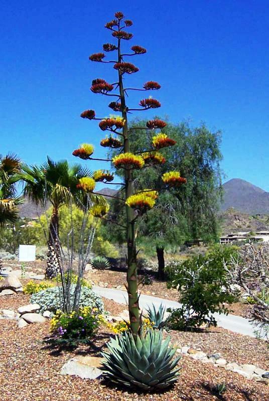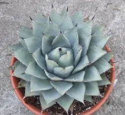 Similar to a giant artichoke, formed by an impressive rosette of bluish gray leaves.