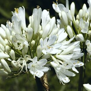 A lily-like plant native to South Africa’s southwestern Cape Province that forms clusters of straplike, light green leaves that give rise to long-stalked inflorescences that hold a globe of countless, lily-like flowers at the tip. In cultivation it does well in a range of temperate climates in USDA Zones 7 to 10. This cultivar is larger in all parts, with the typical blue flowers. It is evergreen in milder climates but will lose its leaves in colder winters. Plants in cultivation are usually incorrectly sold under the name A. africanus.