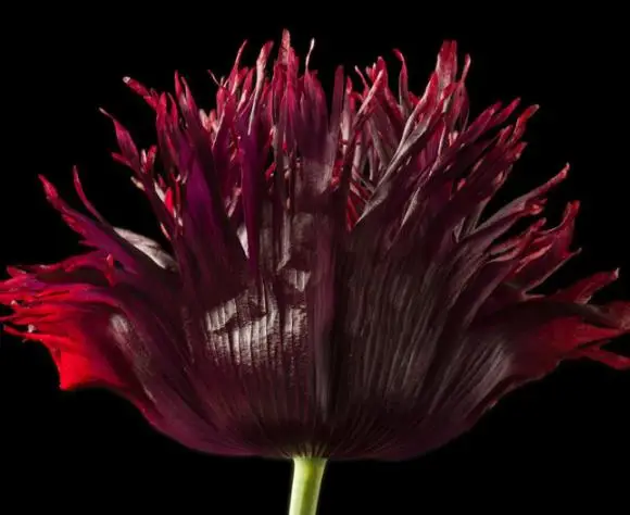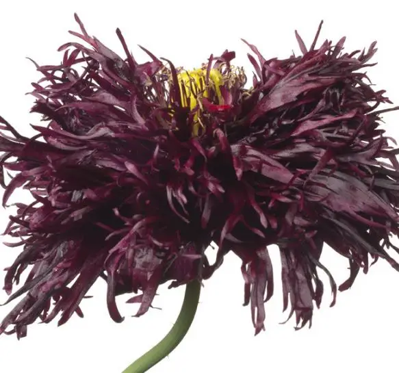 This variety has the folded petals (are double) intensely trimmed and fringed like feathers, the coloration is almost black, ranging from red wine to black doing justice to its common name black swan.