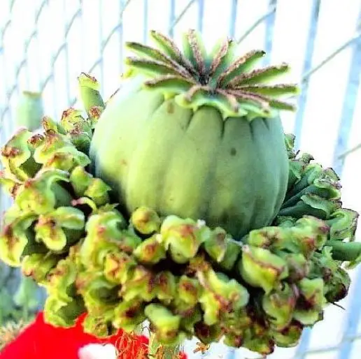 This ancient form of poppy produces the most unusual seed crown among all poppies. The main pod is surrounded by a mass of smaller pods giving the impression of a mother hen and her chicks.