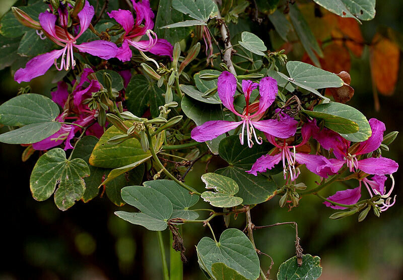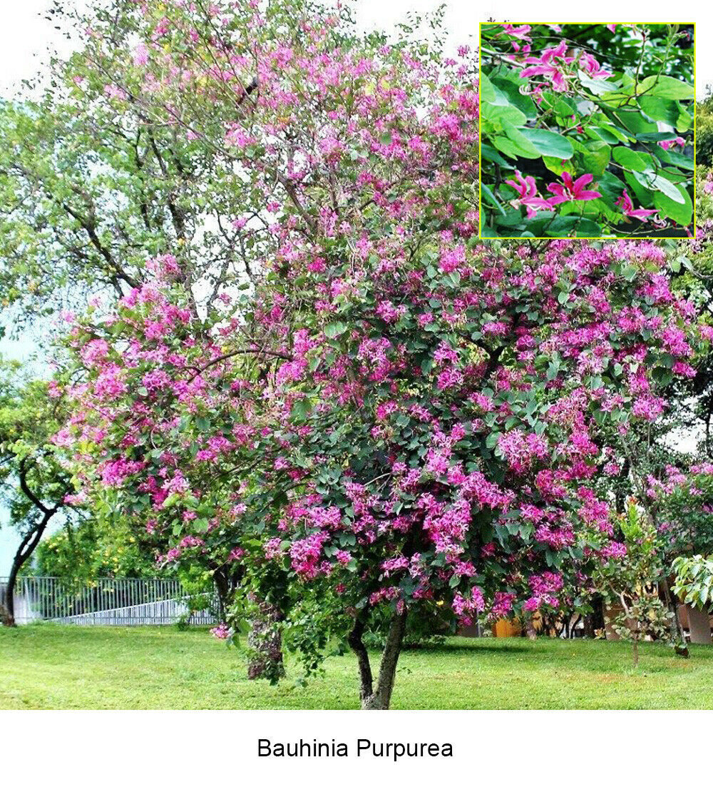 A beautiful, small to medium-sized, evergreen or dry deciduous tree with purple flowers, native to forests in southern China and Southeast Asia. Bauhinia purpurea makes a highly desirable ornamental and is widely cultivated in warm temperate and tropical regions in USDA Zones 9 to 11.