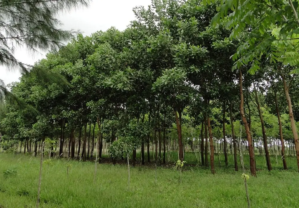 Nursery techniques : Pre treated seeds are sown in plastic trays filled with vermiculate or in nursery beds and watered regularly. The germinated seeds are potted in polythene bags of size 20 x 10 cm filled with compost or soil based potting mixture. Seeds can also be sown directly in containers such as polythene bags, root trainers, etc. using appropriate potting media. The slow release fertilizer which contains N, P, K, Ca, Mg, S and trace elements, significantly improve the growth of seedlings in the nursery.