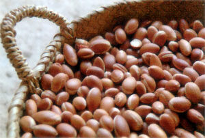 Oil contains 80% of insaturated fatty acids, is rich in essential fatty acids and is more resistant to oxidation than olive oil. From argan oil and its almonds, still suggested with honey or sugar, the amlou (peanut paste or butter) is prepared.