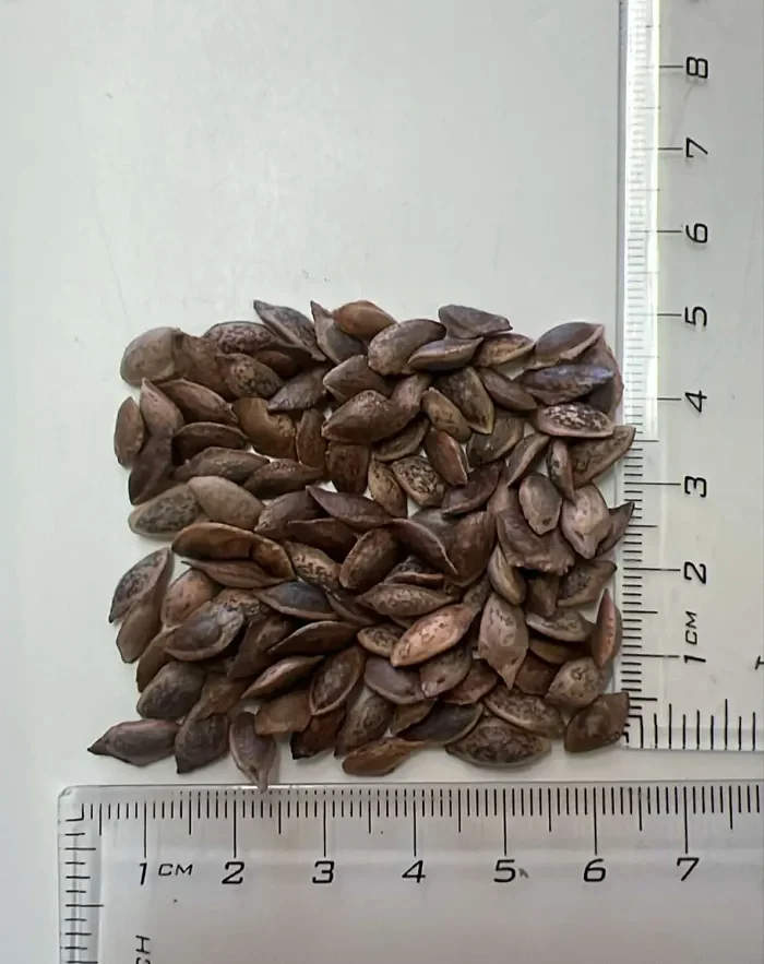 The cones of Pinus wallichiana are long and slender, measuring 15-30 cm. They are erect when young but become pendulous as they mature. The cones are initially bluish-green and turn a light brown when they ripen. The seeds are small, about 5-6 mm long, and have a long wing (20-30 mm) that helps with wind dispersal. They are enclosed within the scales of the cone and are released when the cone opens, typically while still on the tree.