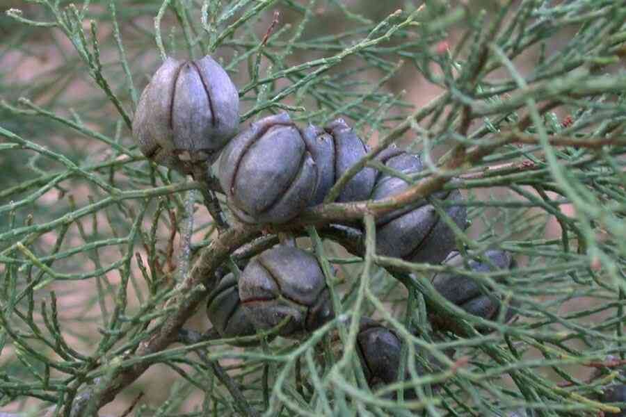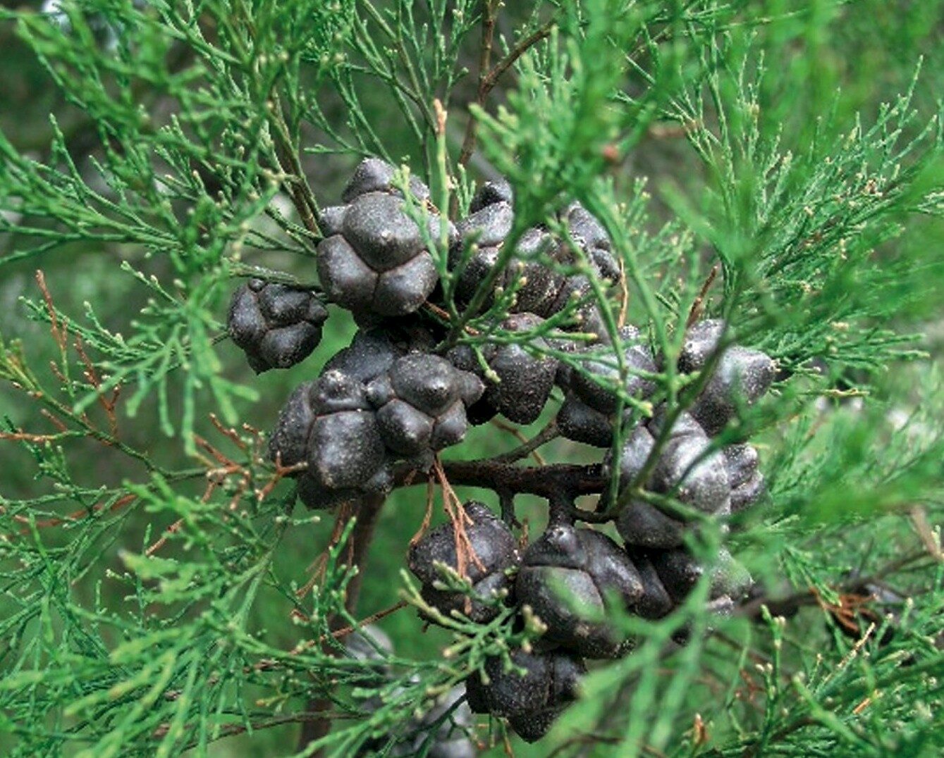 An attractive, medium sized conifer to about 15 m tall, native to the coastal woodlands of eastern and southeastern Australia, with bright green, needle-like branchlets, small orange male cones and large, woody, grayish-brown female cones containing small, rounded, dark-brown seeds. Its termite-resistant wood is used in construction and craftwork. Callitris rhomboidea makes a fast-growing ornamental for temperate climates in USDA Zones 8 to 10.