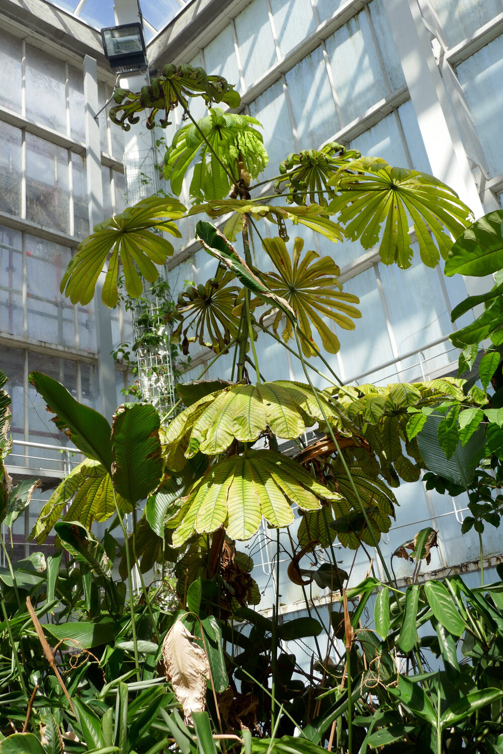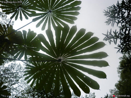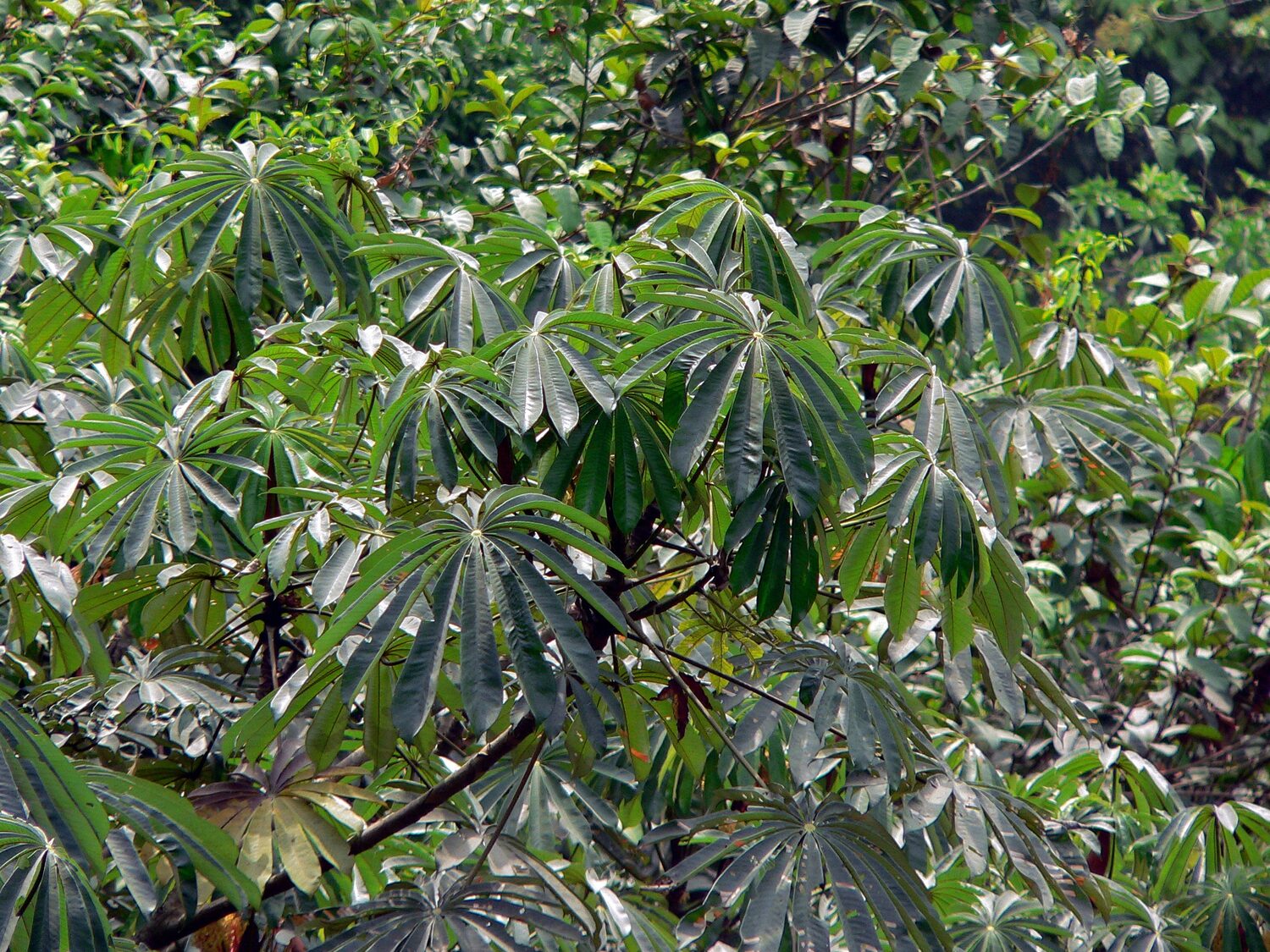 A stunning, small to medium-sized, stilt-rooted tree with an umbrella-like crown of large, circular, palmate leaves that are divided to the base into numerous, long segments. It is native to a variety of humid, tropical forests in western and central tropical Africa, where it can be locally common. Like the closely related Cecropia, Musanga needs a lot of light to flourish and is often associated with disturbed sites where it takes advantage of gaps in the forest canopy. Musanga cecropioides is fast growing and adaptable, and a beautiful tree for the tropics. It is ideal for quickly creating a canopy and for erosion protection. Its wood is very light and the branches pithy. The tiny seeds germinate quickly in warm, humid conditions.
