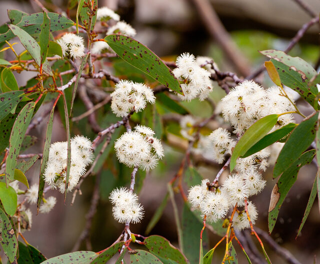 A large shrub or small to medium-sized tree native to the Grampians mountains of southwestern Victoria, Australia with thick, leathery foliage and clusters of cream colored flowers. In habitat it grows in subalpine areas to the tree line and is usually heavily covered in snow during winter. It is one of the hardiest Eucalyptus and will succeed in temperate climates in USDA Zones 8 to 10. Seeds may benefit from cold stratification for 2 months after sowing. To produce stable trees, seedlings must be planted in their second year, when only 30 cm or so tall.