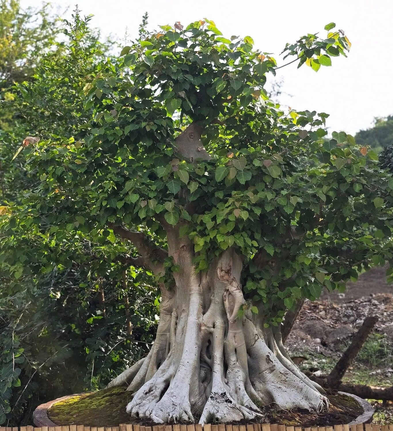 Ficus religiosa is a large, long-lived deciduous or semi-evergreen tree admired for its cultural, spiritual, and ornamental significance. It typically reaches 20 to 30 meters in height, forming a broad, spreading crown with distinctive heart-shaped leaves that have a long, tapering tip and gently flutter in the wind. Small figs appear in pairs along the branches and serve as a valuable food source for birds and wildlife. Native to the Indian subcontinent, it thrives in full sun and well-drained soil, showing strong drought tolerance once established. Revered as the tree under which the Buddha attained enlightenment, the Sacred Fig is often planted near temples, parks, and large gardens.