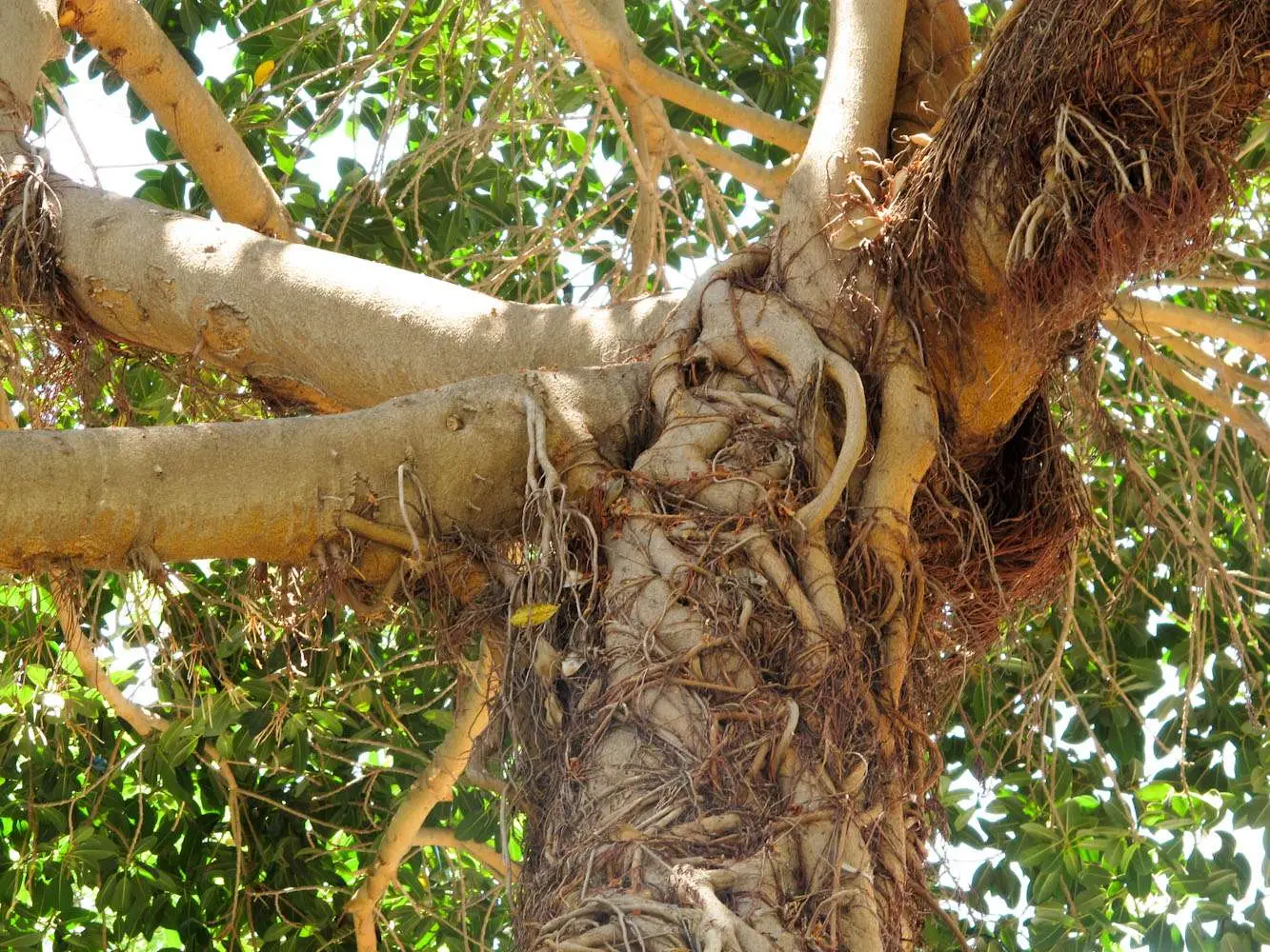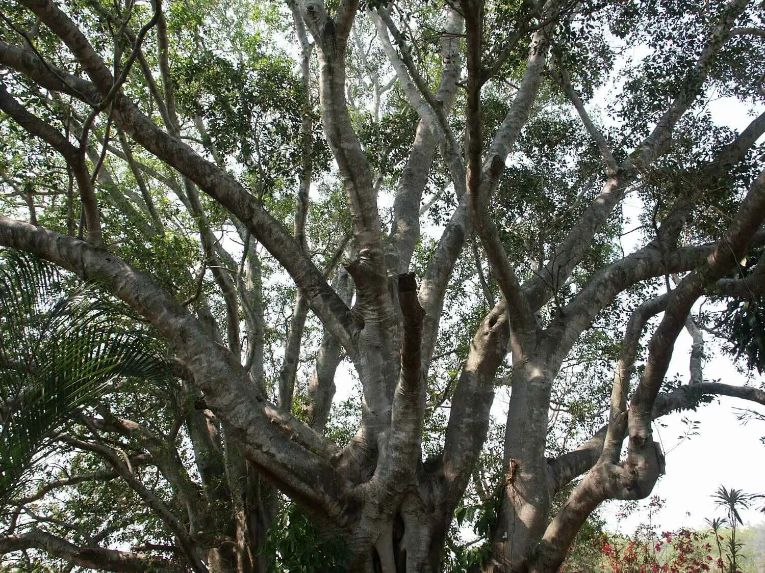 Ficus obliqua, commonly known as the small-leaved fig, Australian banyan, or banyan fig, is a large evergreen tree in the Moraceae family, native to Australia, Papua New Guinea, and parts of the Pacific. It can grow up to 15 to 30 meters tall, with a broad, spreading canopy and characteristic aerial roots that develop into additional trunks over time, creating the impressive “banyan” form.
