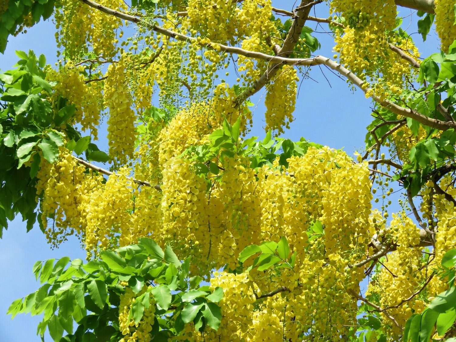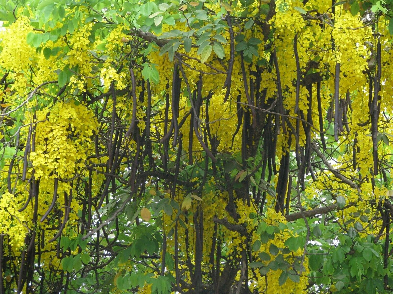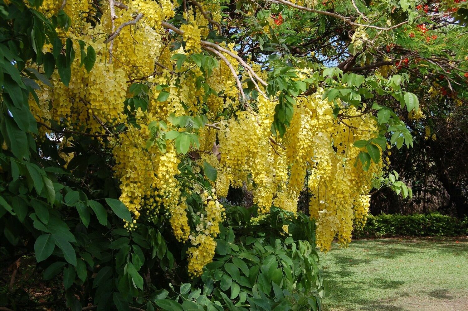 A beautiful, medium-sized, dry deciduous ornamental tree native to southern Asia with bright yellow flowers in long, drooping racemes that appear before the leaves. A popular and easy ornamental for the tropics.