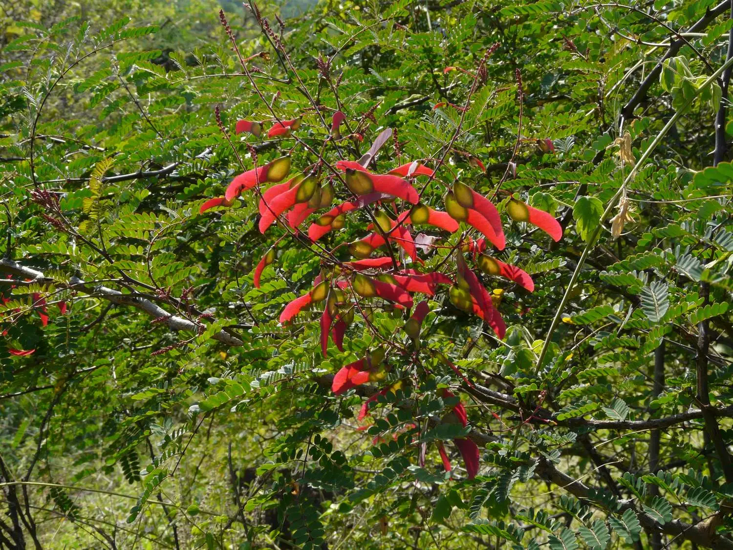 Pterolobium hexapetalum is a spiny, climbing shrub belonging to the pea family (Fabaceae). Its seeds are contained within distinctive pods that are notable for a single, prominent wing, which aids in dispersal by wind. These seeds are a key part of the plant’s life cycle, which begins with germination and develops into a vigorous, often tangled, shrub that can be a prominent feature of its habitat.
