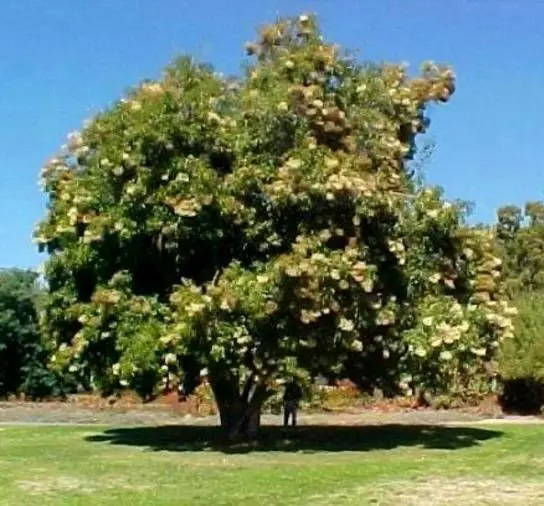 A beautiful shrub or small tree with a lovely dense and round crown, small, green, shiny leaves; and white flowers that are held in large clusters contributing to the great visual appeal of the species.