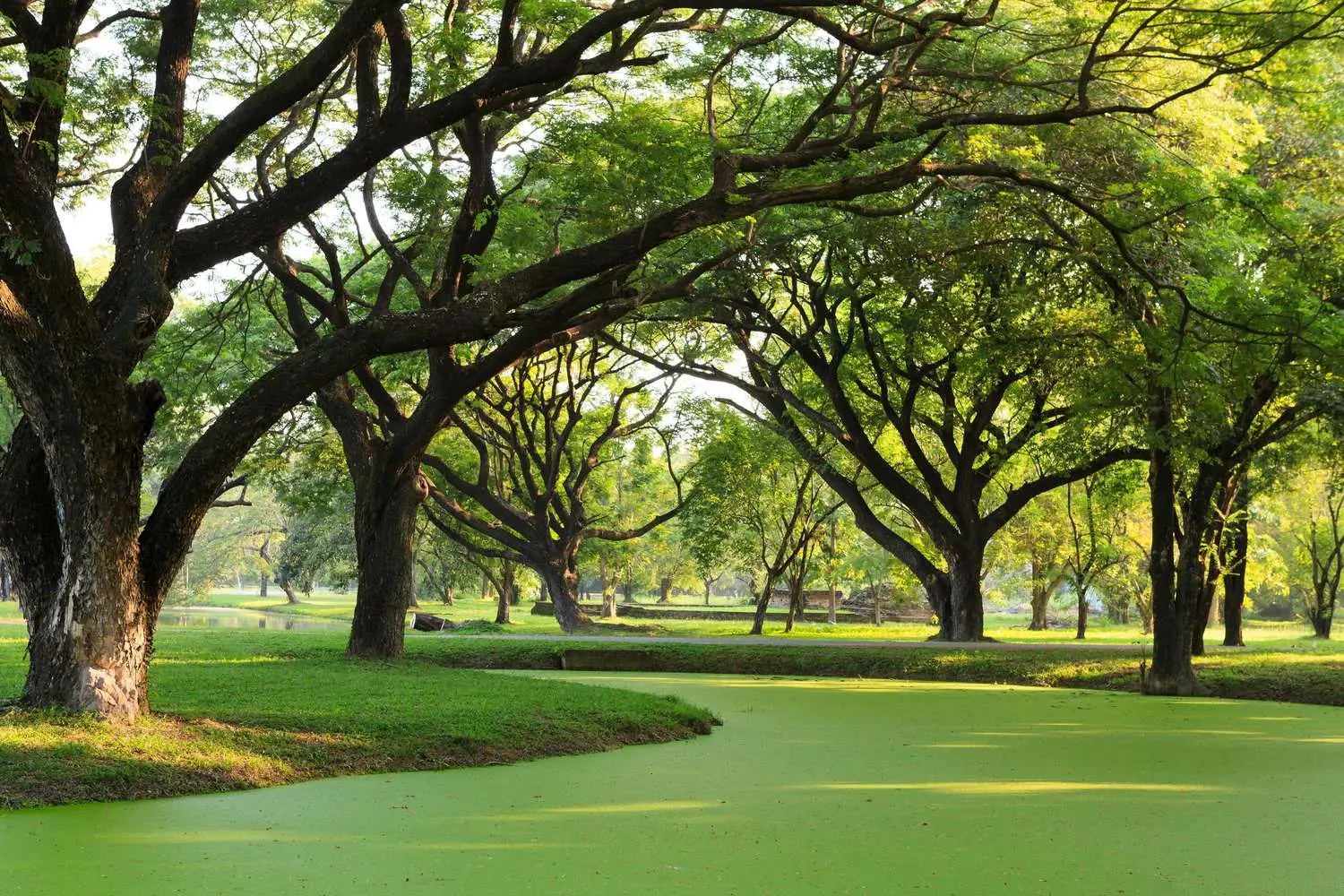 Samanea saman, commonly known as the rain tree, is a large, iconic tropical tree prized for its majestic, wide-spreading, umbrella-shaped crown that provides excellent shade. Native to Central and South America, this fast-growing species is now cultivated across the tropics. A distinctive feature of the tree is its bipinnate leaves, whose small leaflets fold up in the evening and during cloudy or rainy weather, a behavior that gives the tree its common name.