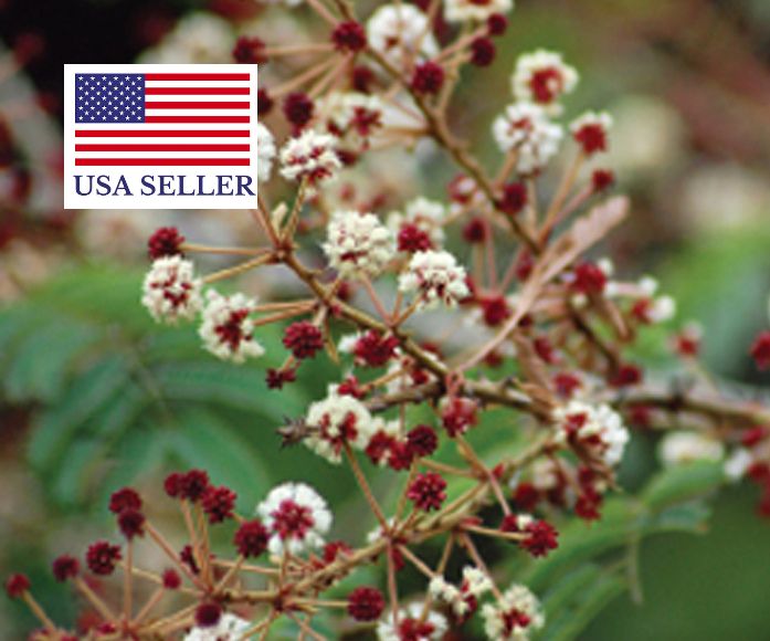Widely distributed across the Indian sub-continent, this is a climbing thorn bush, well known locally for its use in traditional medicine. An infusion from the plant is used as a mild anti-dandruff shampoo and, whilst lacking the lather of traditional chemical shampoo, it does not strip the oil from the hair and scalp. The thorny stems climb and scramble over and through other plants. The leaves are pinnate, typical of that seen in the Acacia family. It flowers in late Spring and early Summer, these are quite striking with white powder puff like petals appearing from crimson buds. These are followed by seed pods containing hard coated seeds. The flowers are very attractive to bees and provide an early season source of nectar for them. It can be grown in many garden settings and is hardy in Zones 8- 11, making it suitable for many temperate gardens, especially if grown against a warm wall. Smaller growing than many species, this makes it ideal for smaller gardens or container growing.
