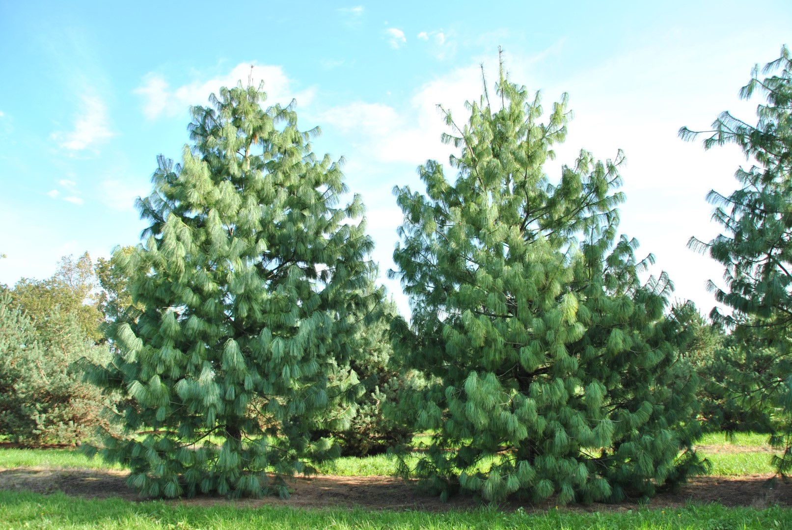 This tree can grow to 30-50 meters tall with a straight trunk and a broad, pyramidal crown that becomes more open and irregular with age. The bark on young trees is smooth and gray but becomes fissured and darker with maturity. The needles are a striking feature: they are long (12-20 cm), soft, slender, and arranged in bundles of five. They are typically a bluish-green or grayish-green color, and they often hang down, giving the tree a soft, flowing appearance.