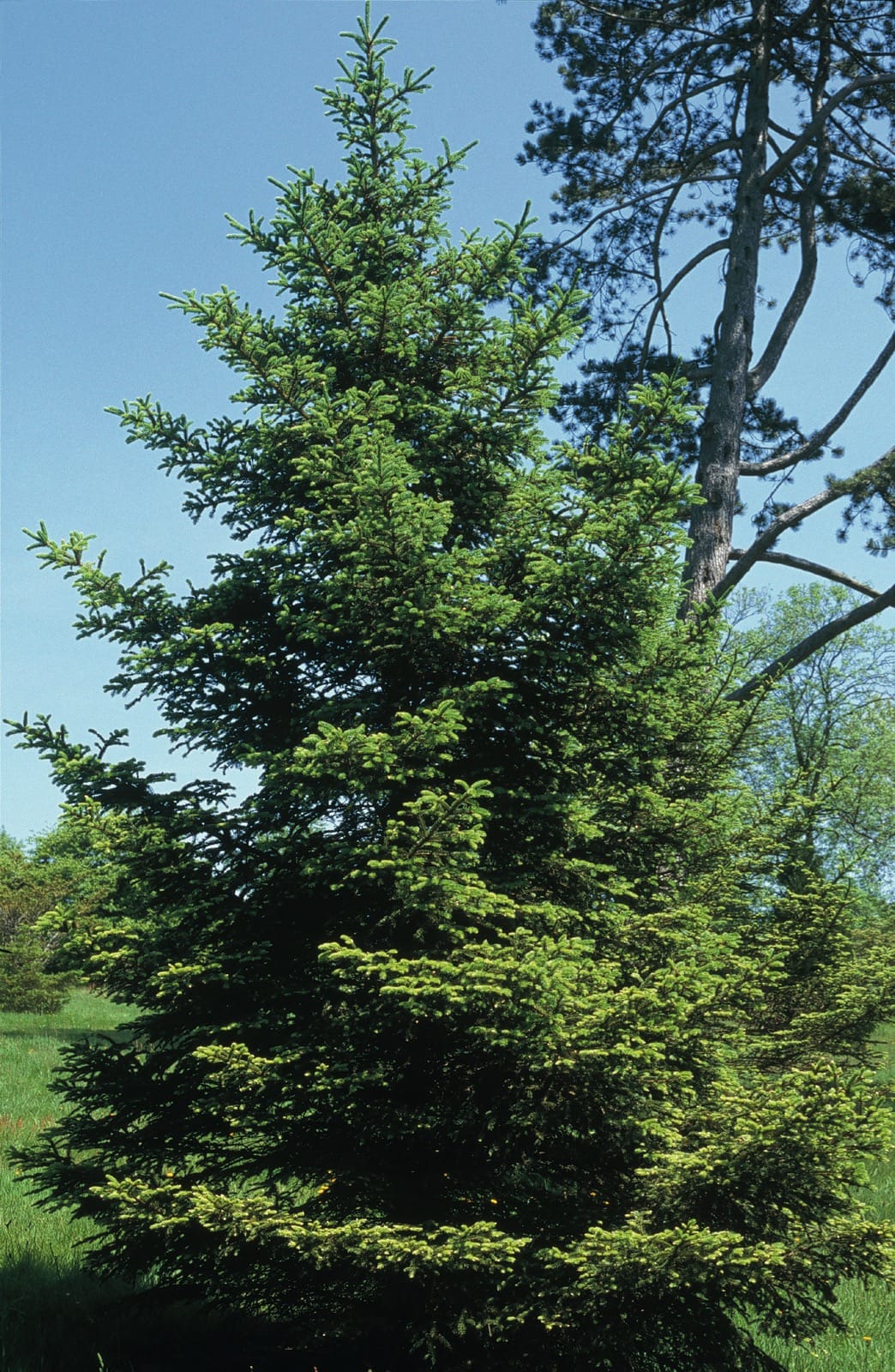 A beautiful, giant conifer with a narrow conical crown of dark green, needlelike leaves that can reach more than 50 m tall. It is native to forests from northern Turkey to western Caucasia (Abkhazia and Georgia) in the mountains around the eastern Black Sea between 900 and 2100 m. Abies nordmanniana makes a wonderful ornamental suited to temperate climates in USDA Zones 4 to 9. It also makes a very attractive Christmas tree. Seeds should be cold stratified for a month after sowing.