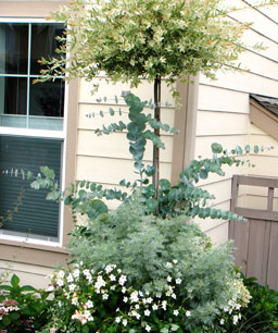 Powdery eucalyptus “baby blue” is the silver dollar of florists worldwide. The cultivar of bridal bouques and garlands, the bluish gray of its foliage makes it a wild card for floral arrangements.