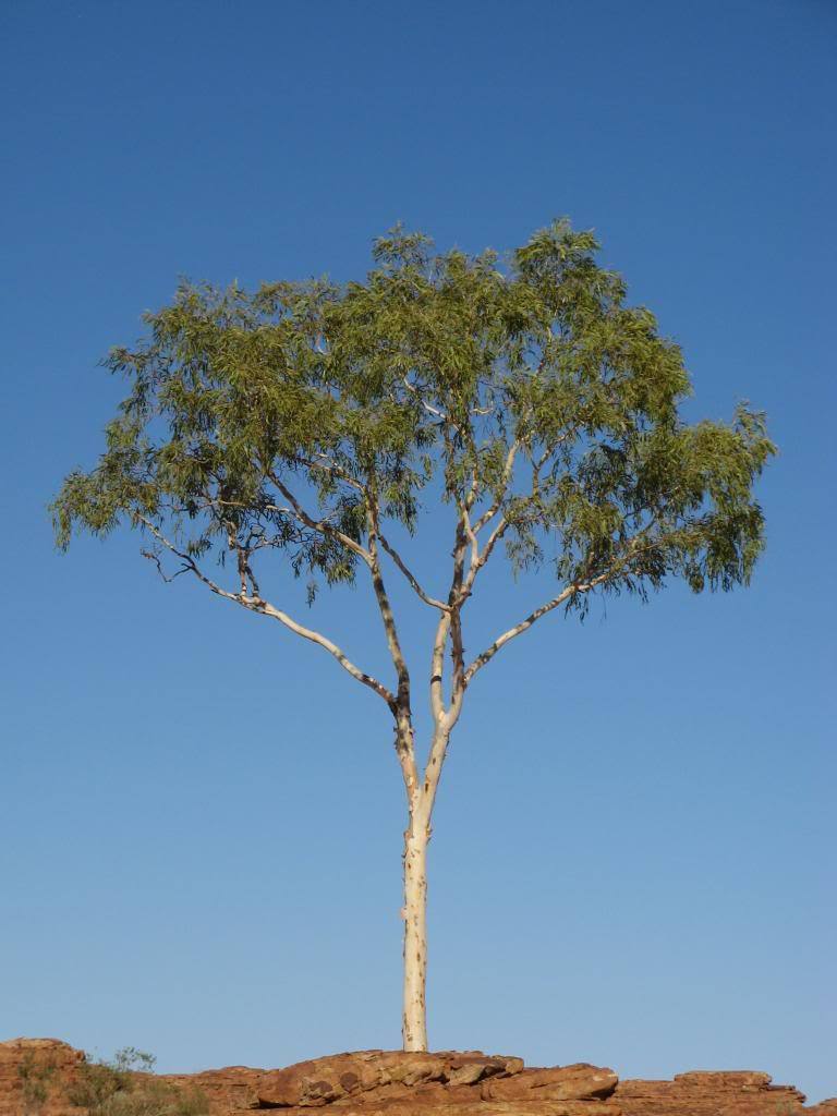 A majestic tree, up to 50 m tall, originally distributed from New Guinea to eastern and southeastern Australia but cultivated elsewhere for its high quality wood, which is often used in construction, and for the leaves, which represent a source of aromatic oils. It develops a straight trunk covered in smooth, peeling bark which is whitish mottled with gray, green or bluish tones. It has narrow, dull green leaves and clusters of white flowers. In its natural habitat, Eucalyptus tereticornis is an important source of food for koalas. An excellent ornamental and shade tree for tropical and warm temperate climates.