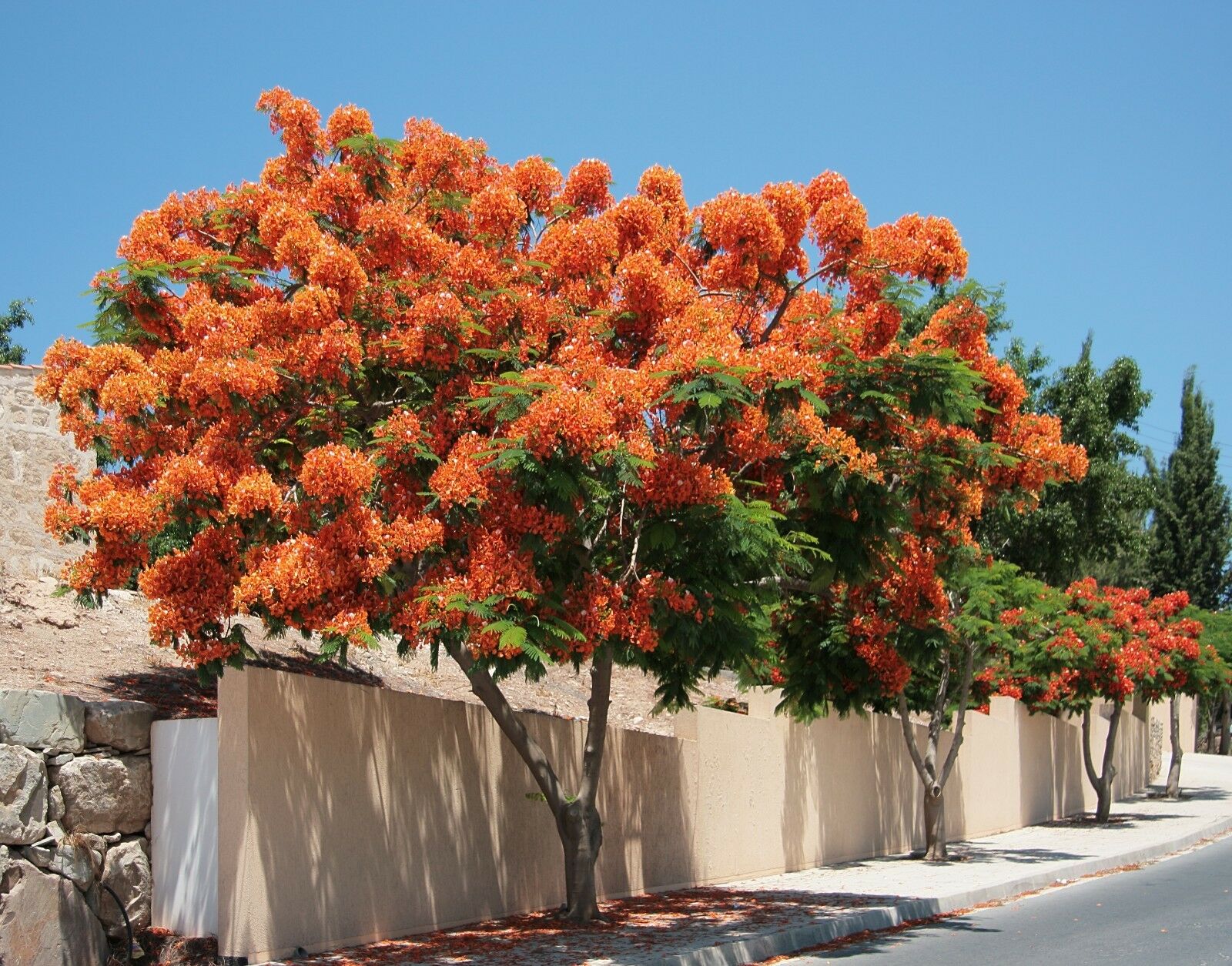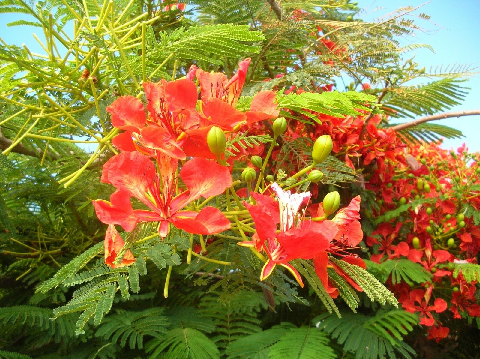 Considered by some to be the worlds most beautiful tree, this large, partially dry deciduous tree from lowland forests in northern and western Madagascar forms a huge, spreading crown with finely pinnate foliage and beautiful red flowers that cover the entire plant for several weeks before the new leaves appear. A popular and easily grown ornamental, widely planted around the world in tropical climates in USDA Zones 10 and above. Seeds should be scarified or immersed in boiling water to break dormancy, then soaked at room temperature for a day.