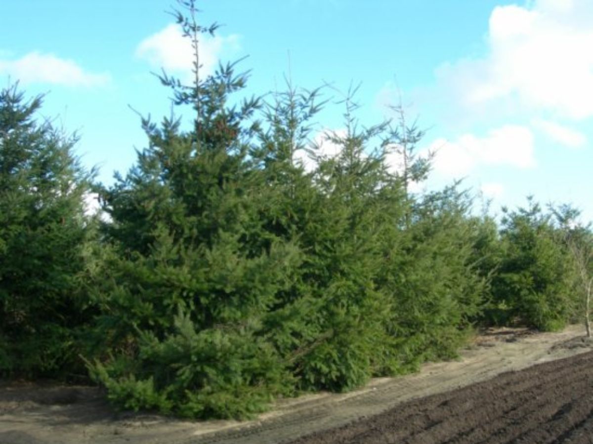 Fast-growing conifer that can reach a height of 100 m in its natural habitat but which remains smaller when cultivated. At first, the crown is broadly pyramidal with an ascending, vertical trunk, but later it becomes oval. The top branches grow vertically: the lower branches hang down. The bark is corky and has deep grooves. Young twigs are yellowish green to yellowish grey and have fine hairs. The top of the protruding needles is dark glossy green: underneath they have 2 white stripes. When rubbed they give off a very fresh smell. Reddish brown, hanging cones are 3 – 3.5 cm thick and up to 10 cm long. The tree is not very demanding when it comes to soil and even grows on poor, dry, sandy soil. It can even survive lengthy periods of drought. The tree is an important supplier of timber. The oldest known specimens are between 500 and 700 years old.